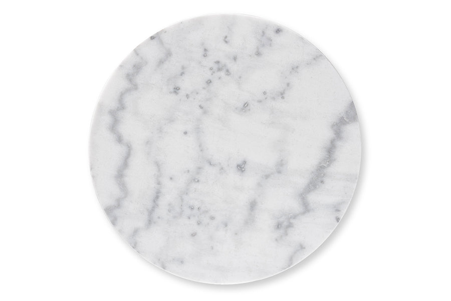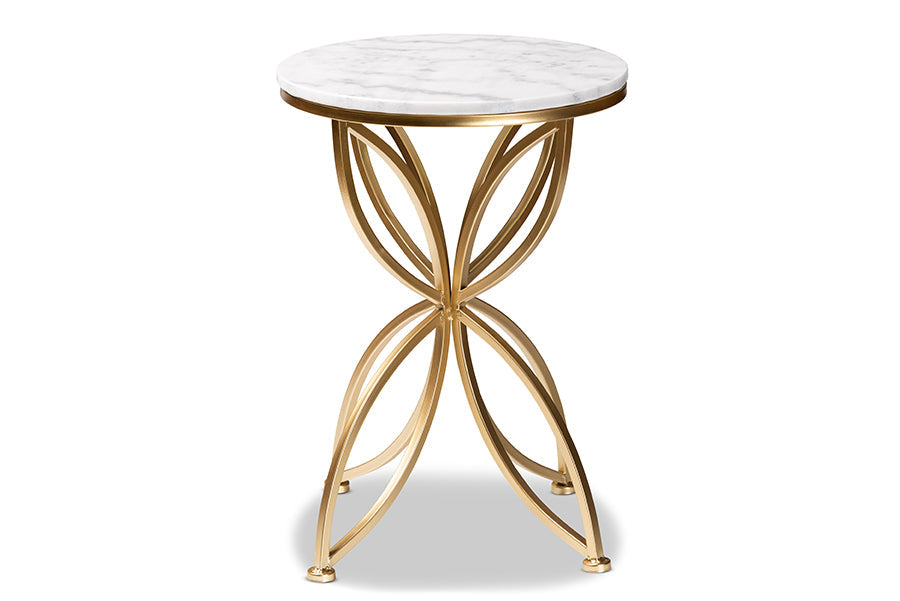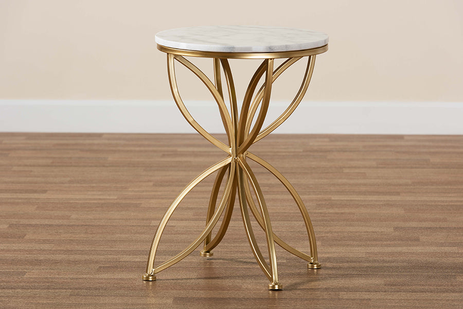 Bring a luxurious and convenient accent to your space with the lovely Alan end table. Made in China, this table is comprised of a solid metal base topped with a clean marble tabletop. The geometric base features angled legs in a pleasant, symmetrical design that is sure to stand out. The Alan will arrive fully assembled and utilizes a rounded tabletop that forms a smooth display. A petite yet practical addition, the Alan end table beautifies any interior space.