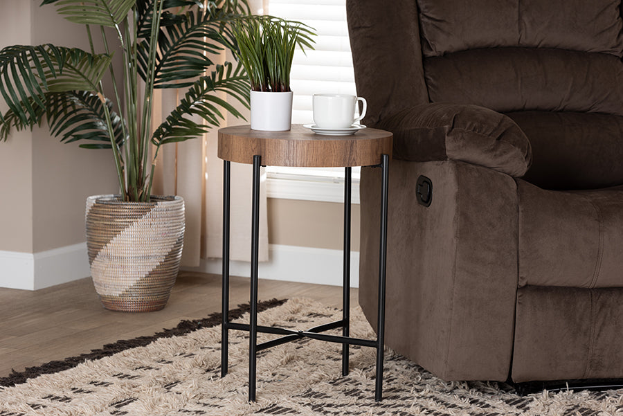 Soothing wood tones and sleek metal add a wonderful aura to any interior with the Poltak end table. Made in China, this industrial inspired piece consists of a lovely openwork metal base topped with a wood tabletop. Its round tabletop serves as a wonderful solution to add table space to any layout while lending a touch of smooth geometry. The Poltak requires assembly and features straight legs connected by a crisscross base for excellent stability and support. Add that finishing touch to any interior space with the superb style of the Poltak end table.