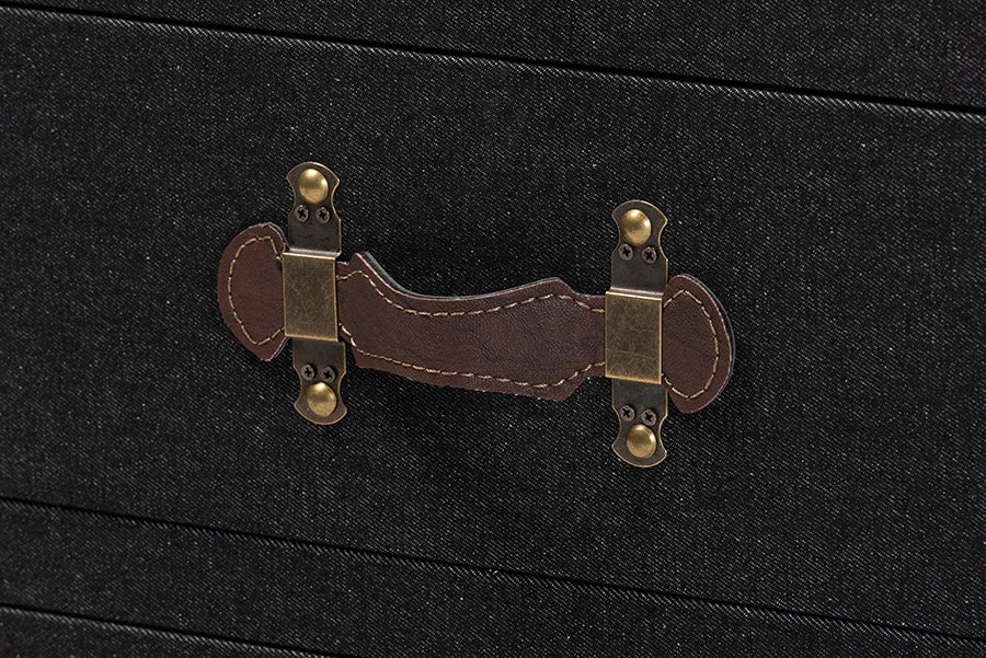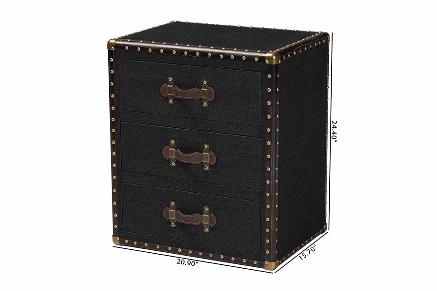 Vintage charm springs forth in the form of the stunning Roze end table. Adeptly crafted in China, this traditional piece consists of a sturdy wood frame wrapped in smooth canvas. Three drawers offer convenient storage for household essentials while reserving the tabletop for daily use. The Roze will arrive fully assembled and is affixed with metal bands studded with nail heads for an extra dose of industrial charm. Faux leather handles complete the look, making the Roze end table an eccentric addition to any setting.