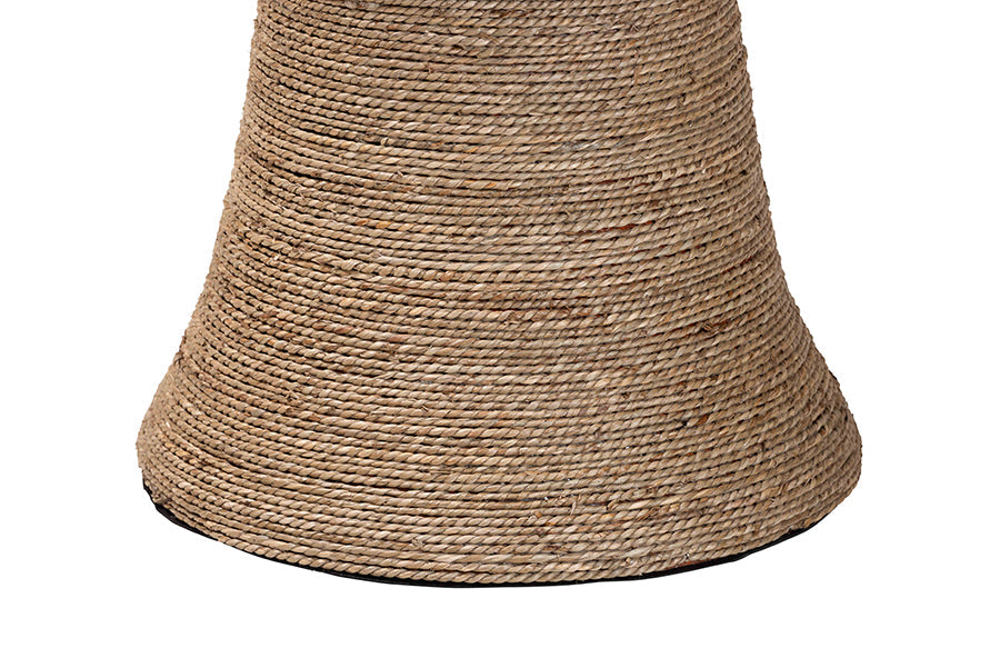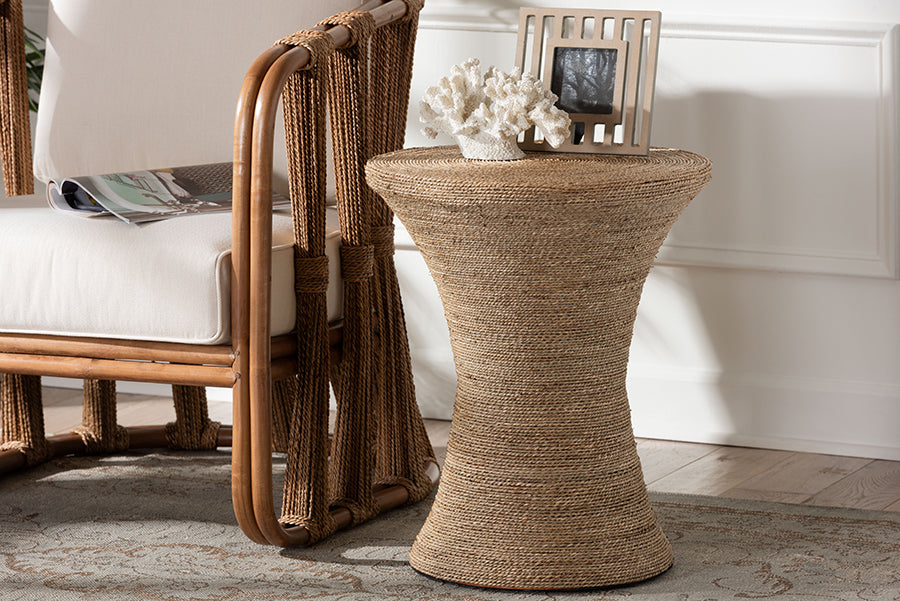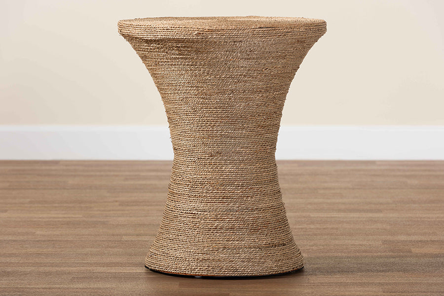 The Rumi side table immerses your space with an atmosphere of rustic ease. Made in Vietnam, this Japandi piece consists of a sturdy wood frame beautifully embellished with woven seagrass. Its hourglass silhouette tapers with smooth geometry for an astonishing display from any angle. The Rumi will arrive fully assembled and it is recommended to be used with a fitted glass tabletop for proper maintenance. Evocative of an exotic hideaway, the Rumi side table uplifts any setting.