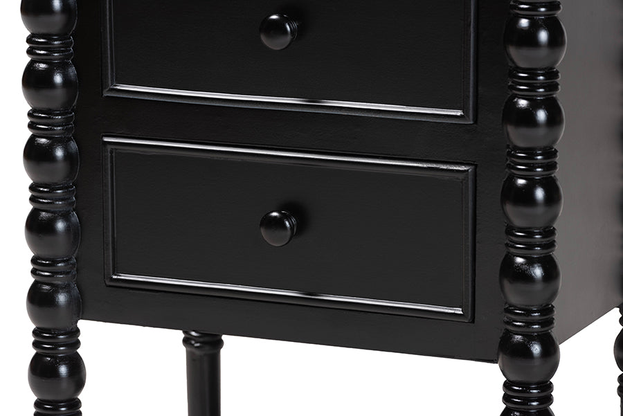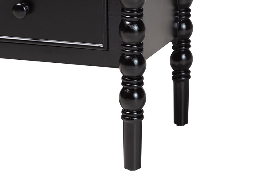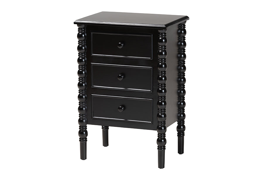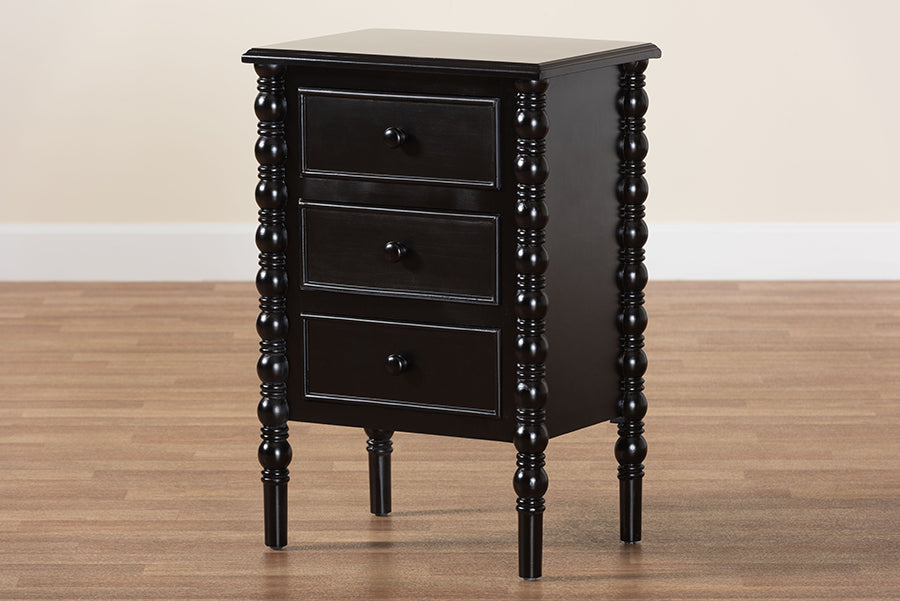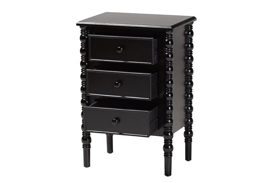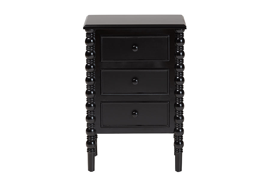 Timeless grace arrives to unify your interior through the beautiful Sophia end table. Adeptly crafted in China, this classic piece is crafted from sturdy wood. Three drawers offer spacious storage for a variety of household essentials, while reserving the tabletop as a lovely display area. The Sophia will arrive fully assembled and utilizes spindle legs with ring-turned embellishments for a captivating presentation from any angle. Round drawer knobs accentuate the piece with smooth geometry, making the Sophia end table an elegant fixture.
