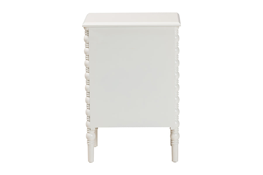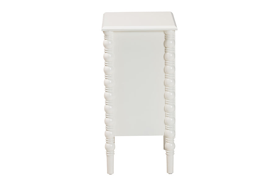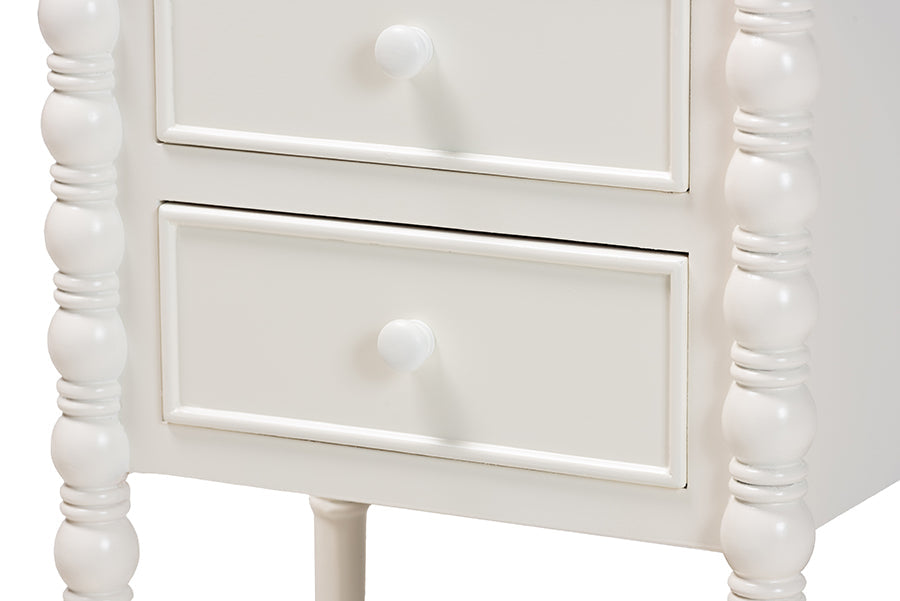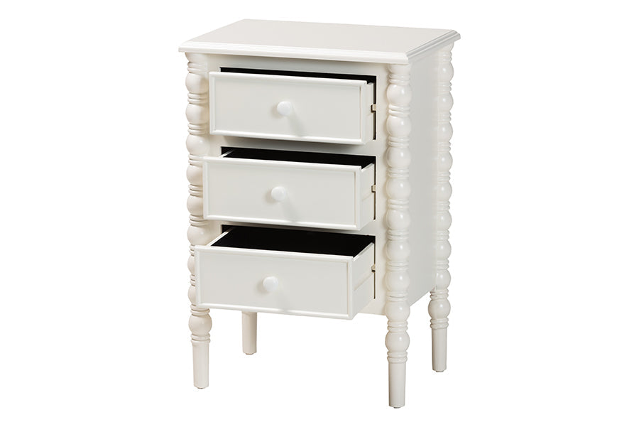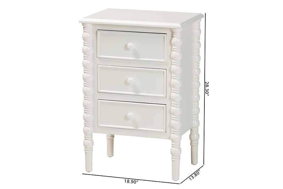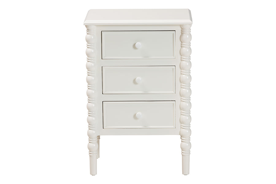 Sophia Classic White Wood 3-Drawer End Table w/Spindle Legs