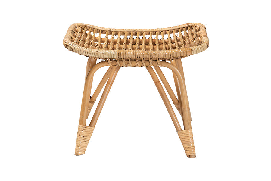 Add that missing piece to your chic living room with the petite yet stylish Reina footstool. Made in Indonesia, this bohemian inspired piece is handcrafted from natural rattan. Its bent seat features woven rattan rods for a light yet supportive design that accommodates your needs. The Reina will arrive fully assembled and utilizes angled legs for excellent stability and support in eye-catching design. Artistically crafted, the Reina footstool is sure to become a beloved accessory in any layout.