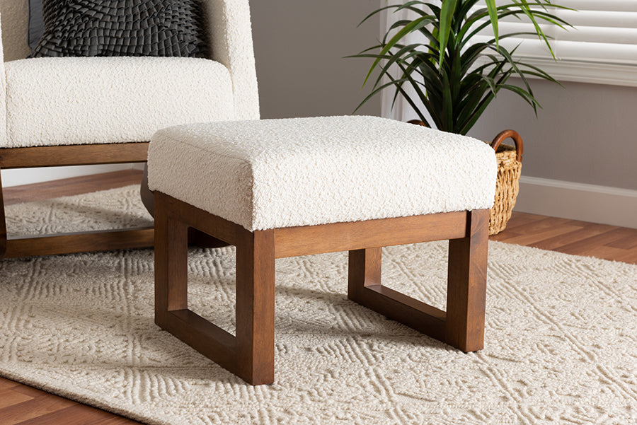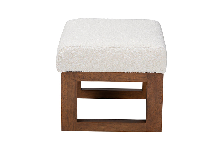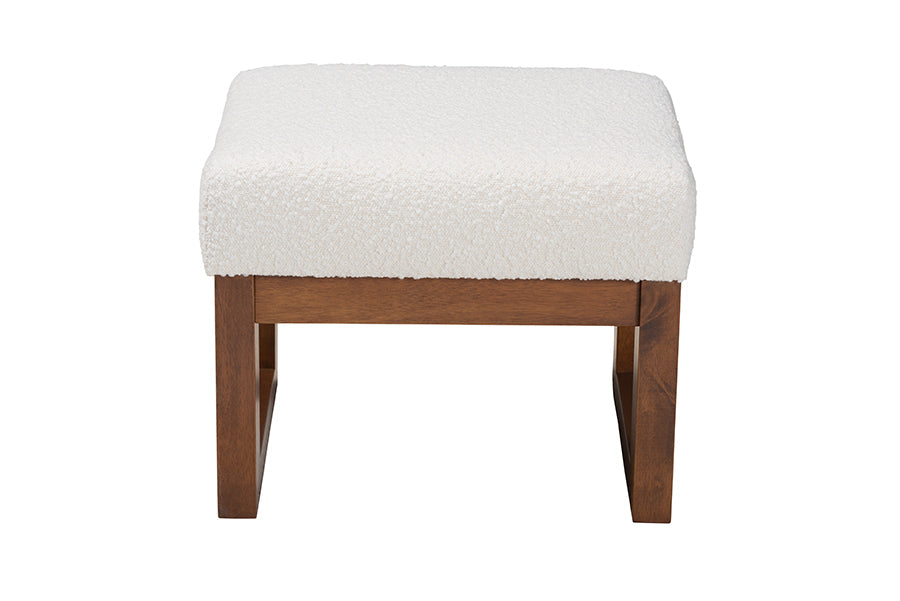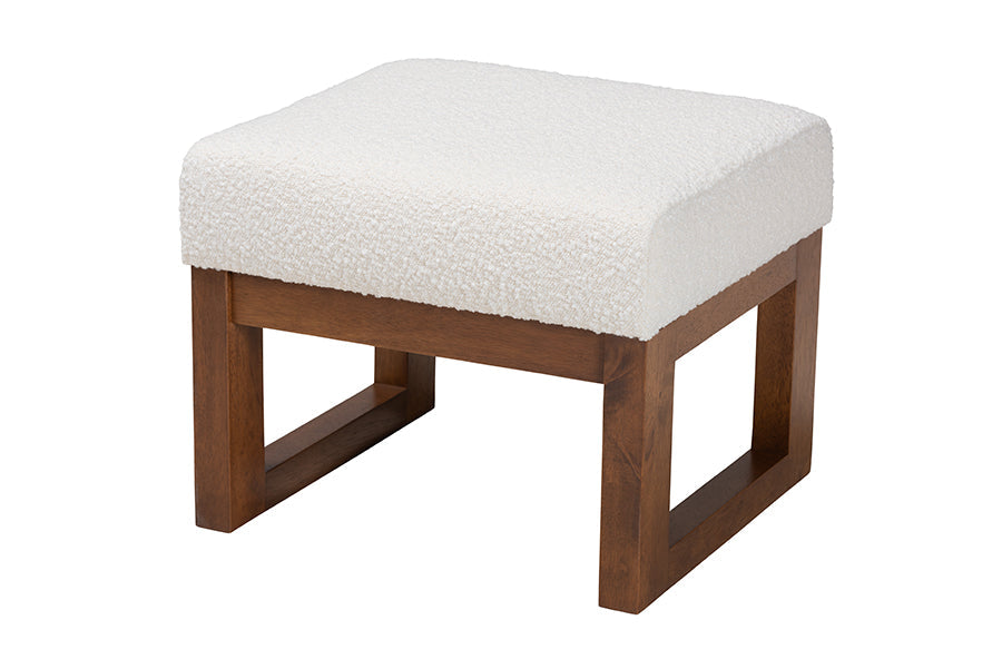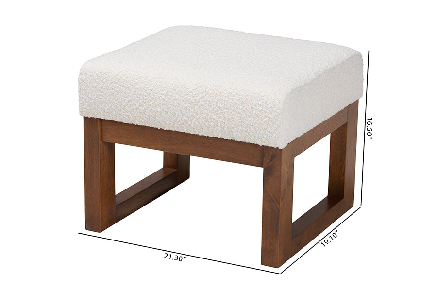 A superb complement to any cozy corner, the Roana ottoman encourages blissful relaxation. Made in Malaysia, this mid-century inspired piece consists of a solid wood frame padded with foam and upholstered in cozy boucle fabric. Its plush cushion serves as a fantastic footstool or extra seat for a versatile piece that accommodates your needs. The Roana requires assembly and features openwork legs for excellent stability and support in sleek design. Whether paired with larger layouts or on its own, the Roana ottoman is sure to enhance any space.