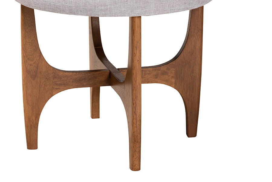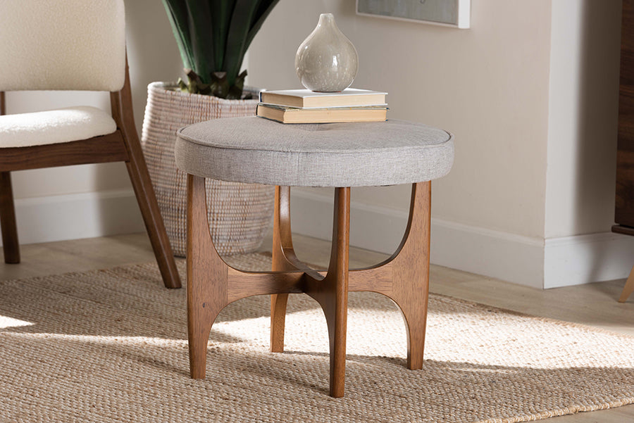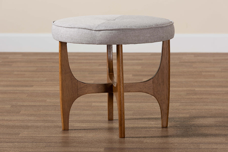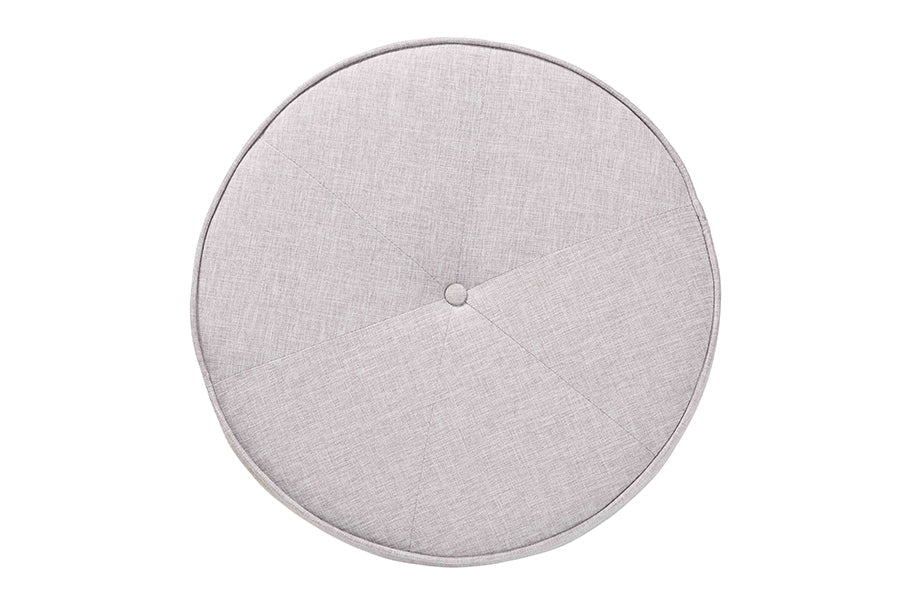 Smooth curves and sweeping geometry make the Porsha footstool a chic accent in any space. Made in Malaysia, this Japandi inspired piece consists of a solid rubberwood frame padded with plush layers of foam and upholstered in soft fabric. The round seat features a lovely button-tufted embellishment for an added touch of traditional charm. The Porsha requires assembly and features a crisscross base that radiates retro flair while providing excellent stability and support. Serving as an artistic accent in any living room, entryway, or bedroom, the Porsha footstool blends well with any arrangement.