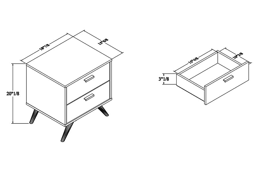 Product Dimensions: Dimensions: 20.1" High x 18.9" Wide x 15.75" Deep; Drawer Dimensions: 3.1" High x 15.5" Wide x 10.4" Deep; Legs: 6" High;