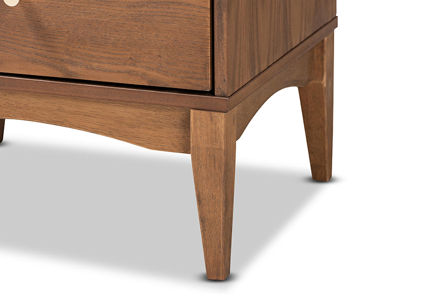 Configure your bedroom to fit your needs with the stunning utility and style of the Quincia nightstand. Made in Malaysia, this nightstand is constructed from sturdy wood displaying a natural ash walnut finish. Two drawers accommodate your nightly routine with plenty of space for bedside essentials. Requiring assembly, the Quincia features gold-tone metal drawer knobs for a subtle touch of glamour. Elevating the function of any bedroom space, the Quincia nightstand brings classic convenience to the modern home.