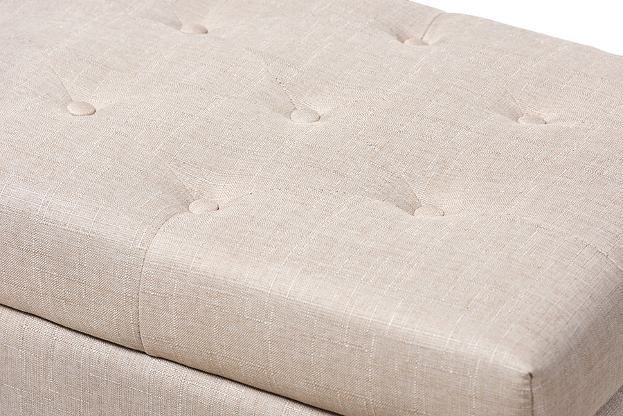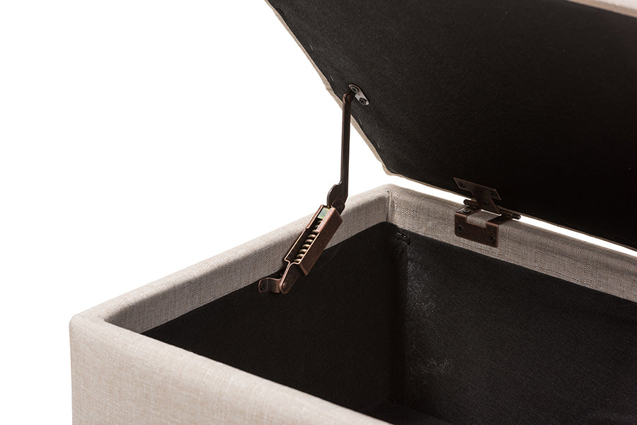 Rocco Beige Fabric Upholstered Storage Ottoman