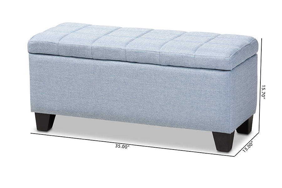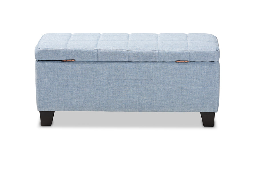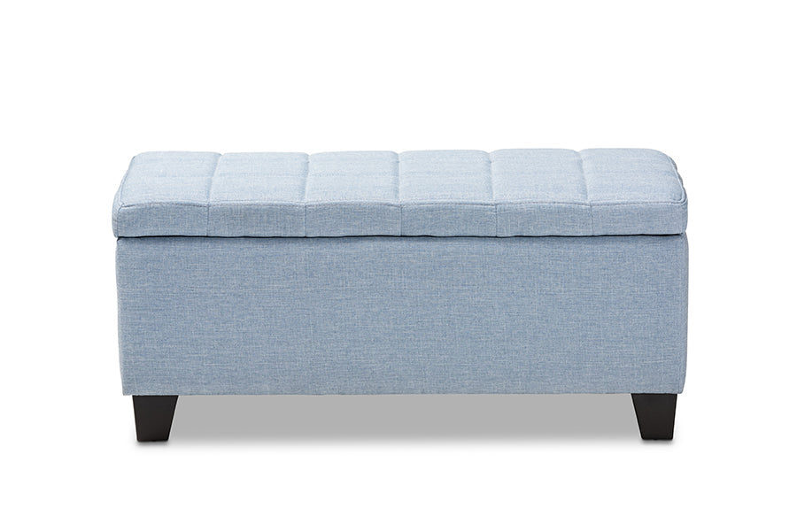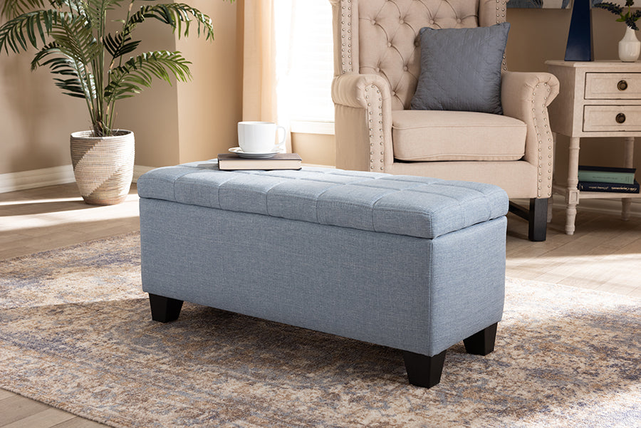 Stylish and versatile, the Radley storage ottoman is a useful addition to any room in the home. This modern ottoman displays a simple, streamlined design that makes it complimentary to a wide range of decor styles. Upholstered in a soft, neutral polyester fabric, the lid is foam-padded and biscuit tufted to provide the utmost sitting comfort. The ottoman features a storage compartment under the lid, providing space to store extra blankets and pillows. Black-finished wood feet complete the look. Use this piece as both seating and storage in the entryway, living room, or bedroom. The Radley storage ottoman is made in China and requires assembly.