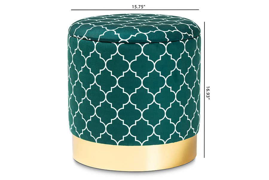 Maximize your storage capacity in the most glamorous way with the Savina ottoman. Padded with foam for the utmost comfort, the Savina features a removable lid that reveals ample storage space. The sleek velvet upholstery displays a quatrefoil pattern for a bold, eye-catching look that complements the striking gold finish on the base. This chic piece is well suited for use as seating or as a footstool. The Savina ottoman is made in China and will arrive fully assembled.