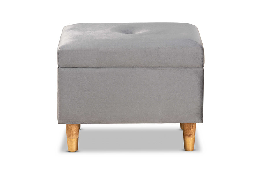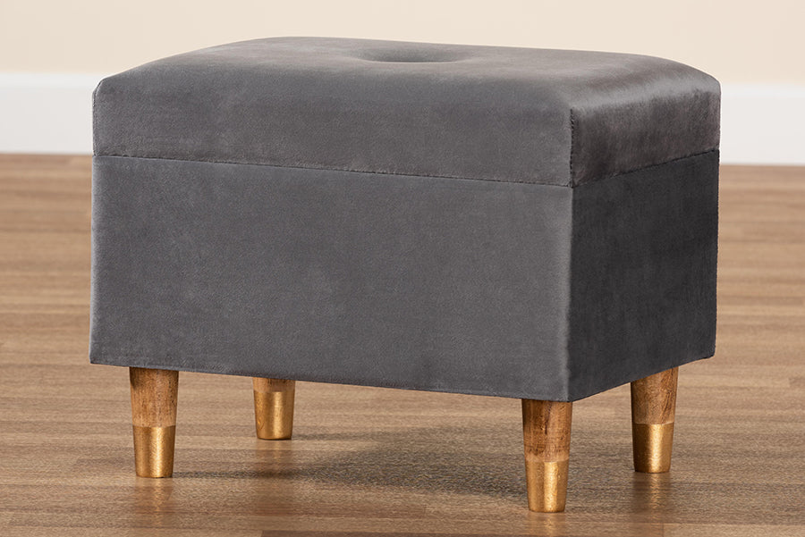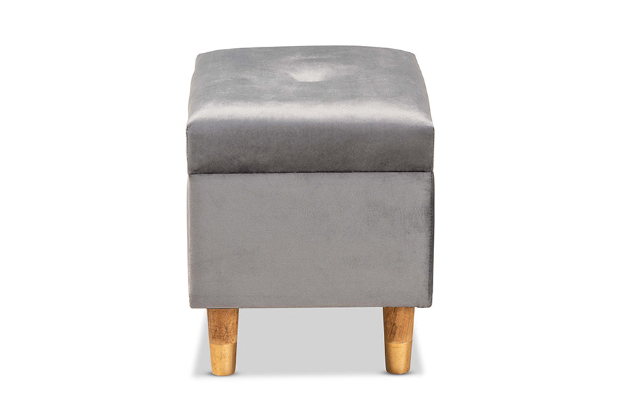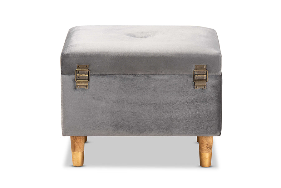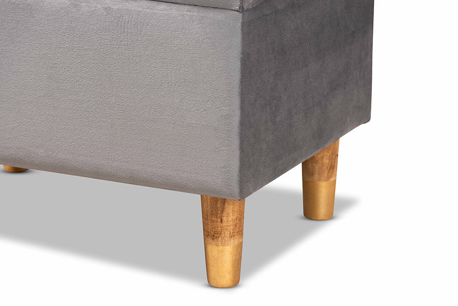 Accent your space with the glamorous seating and handy storage of the Raziel ottoman. Made in China, the Raziel is comprised of a sturdy wood frame padded with foam and upholstered in smooth velvet fabric. Its lift up top reveals storage space for extra blankets and linens. Requiring assembly, the Raziel sits on tapered, oak finished wood legs for a chic, modern look. Button tufting and antique brass finished metal latches lend an elegant touch, making the Raziel ottoman a distinctive addition to any space.