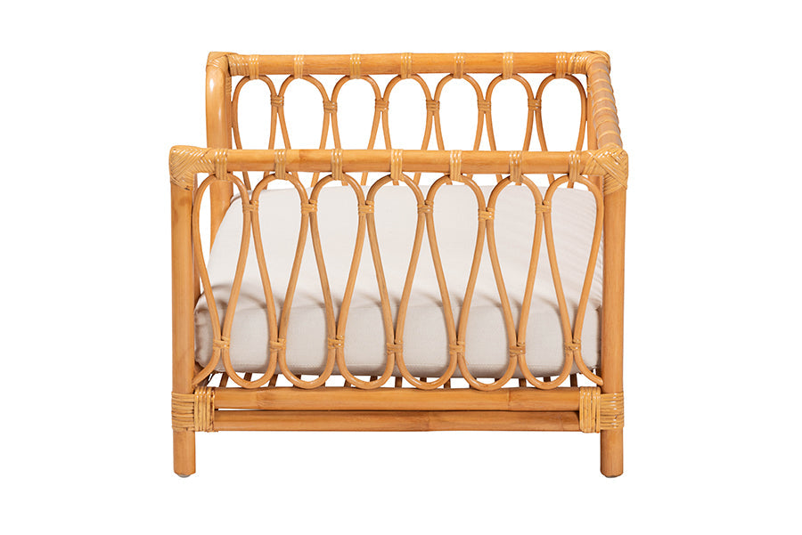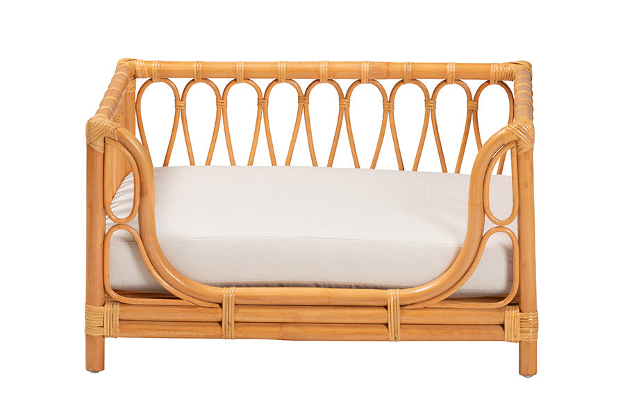 Grant your beloved animal companion their personal piece of paradise with the lovely Manrico pet bed. Made in Indonesia, this bohemian piece is handcrafted from natural rattan by skilled artisans. The raised borders feature a lovely openwork design adorned with beautifully crafted rattan decor for an enchanting design that blends well with any layout. The Manrico will arrive fully assembled and is fitted with a removable cushion padded with plush foam and upholstered in sumptuous fabric for a superb embrace. Bringing rustic serenity to each member of the family, the Manrico pet bed is sure to become a cherished piece of any arrangement.
