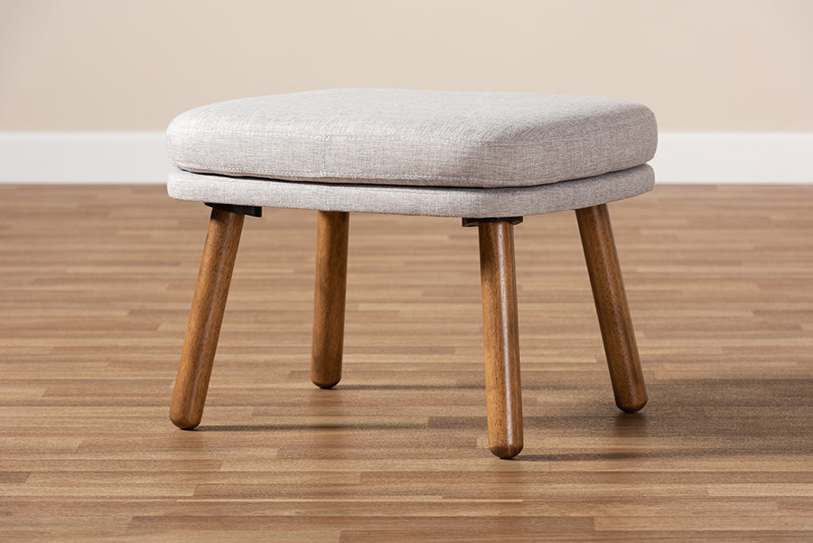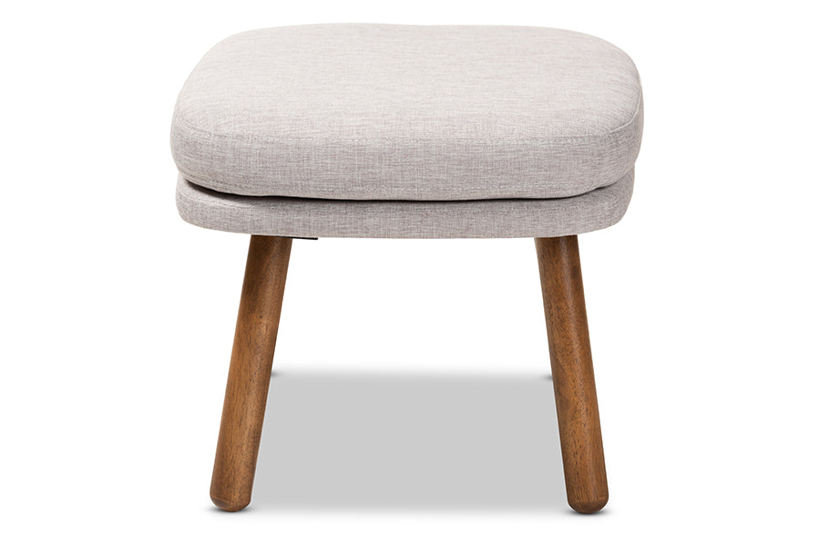 There's a certain comfort to be found in the simple, minimalist look of the Quintus ottoman. The solid colors and smooth angles of the piece are hallmarks of its mid-century modern-inspired design. The Quintus features sturdy, solid rubberwood legs that are rounded towards the bottom for a welcoming look. The legs are finished in walnut brown, while the top of the ottoman is foam-padded and upholstered in greyish beige fabric. The Quintus also features a layered cushion style on the top, further emphasizing warmth and comfort. This dynamic ottoman can easily be coordinated with the existing decor of your livingroom, entryway, or other shared spaces. Made in Malaysia, the Quintus requires assembly.