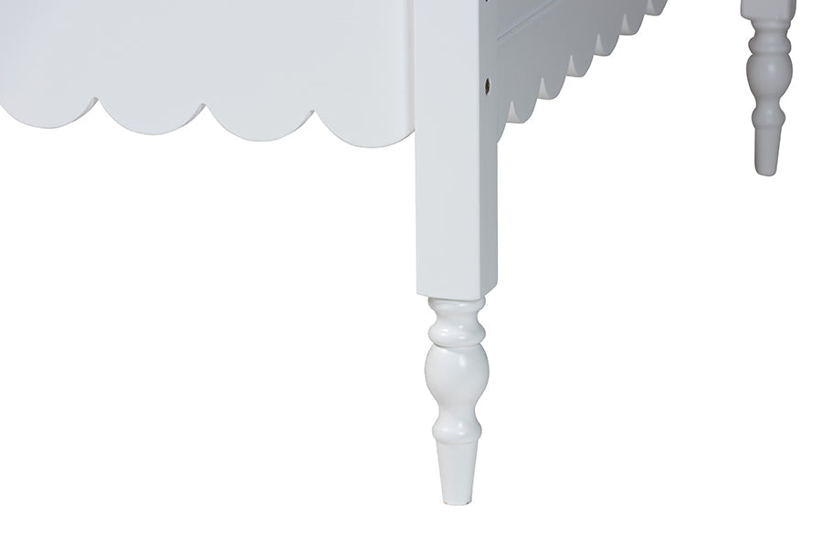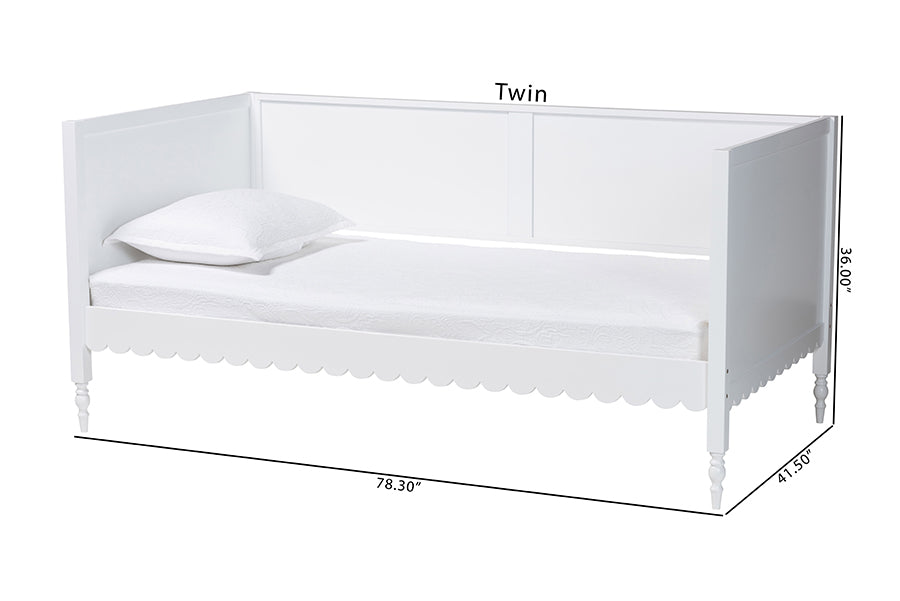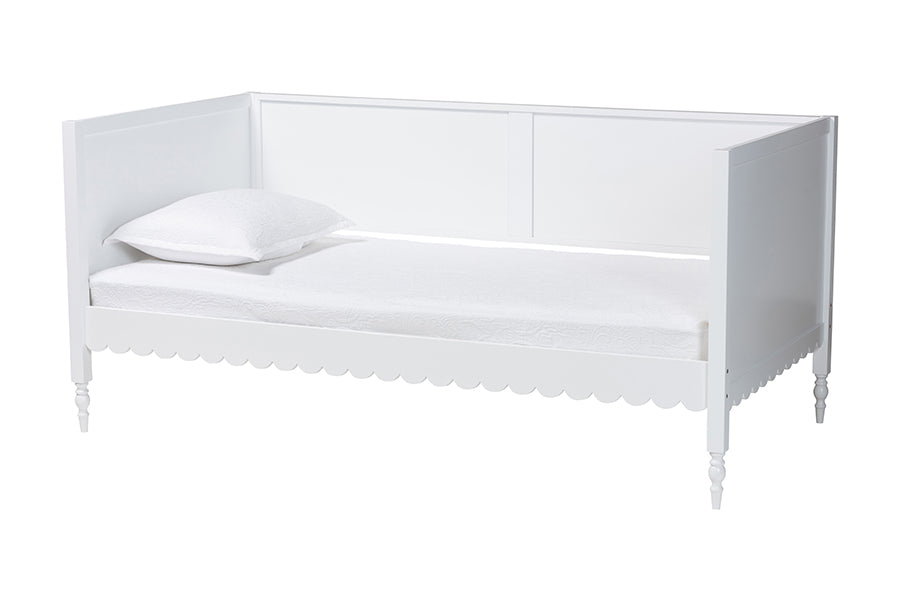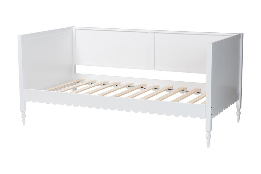 Cultivate a serene atmosphere with the graceful Ygritte daybed. Made in Malaysia, this contemporary piece is crafted from sturdy wood. Scalloped detailing creates an enchanting display that appeals to modern style while accentuating the crisp silhouette of the piece. The Ygritte requires assembly and utilizes wood slats for mattress support, eliminating the need for a box spring. Ring turned legs highlight the timeless charm of the piece, making the Ygritte daybed a tranquil addition to any layout.