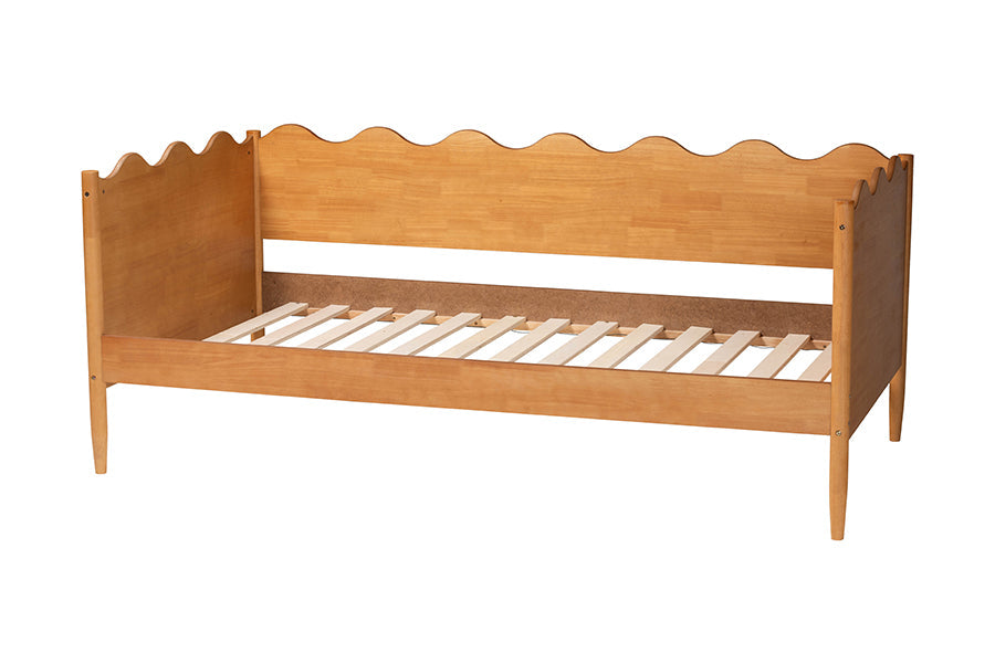 The soothing beauty of modern design coalesces to form the stunning Whitby daybed. Made in Malaysia, this contemporary piece is crafted from sturdy wood. Scalloped borders create a graceful silhouette rich with artistic flair while encouraging an atmosphere of serenity. The Whitby requires assembly and utilizes wood slats for mattress support, eliminating the need for a box spring. Tapered legs complete the look, making the Whitby daybed an oasis of leisure.
