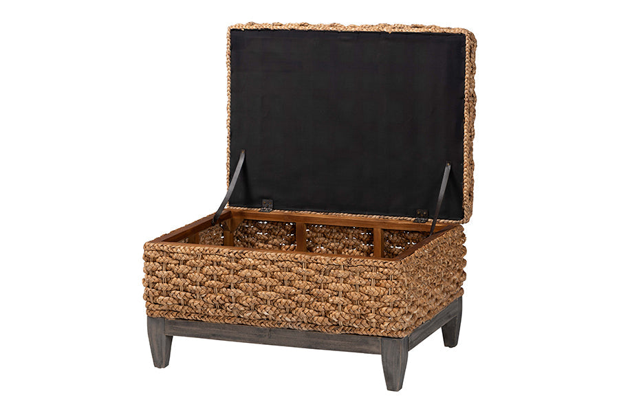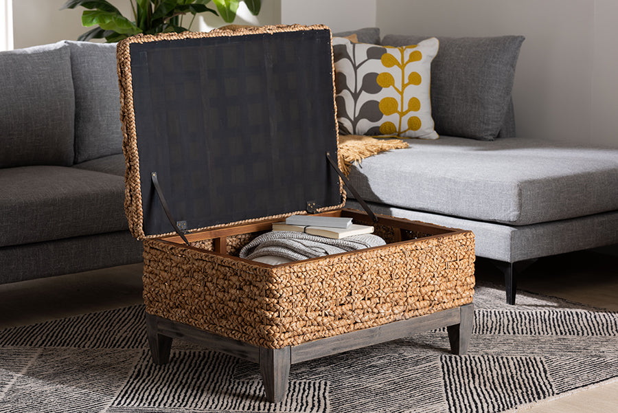 Outfit your space with the beauty and utility of the exquisite Tabitha storage ottoman. Handcrafted in Indonesia, this bohemian piece consists of a solid wood frame encased in natural seagrass featuring a classic basketweave design. Its lift-top opens to reveal a spacious storage compartment perfect for organizing pillows, blankets, and other living room essentials. The Tabitha requires assembly and utilizes tapered legs for excellent stability while creating a sleek silhouette. An astonishing centerpiece or complement, the Tabitha storage ottoman elevates any arrangement.