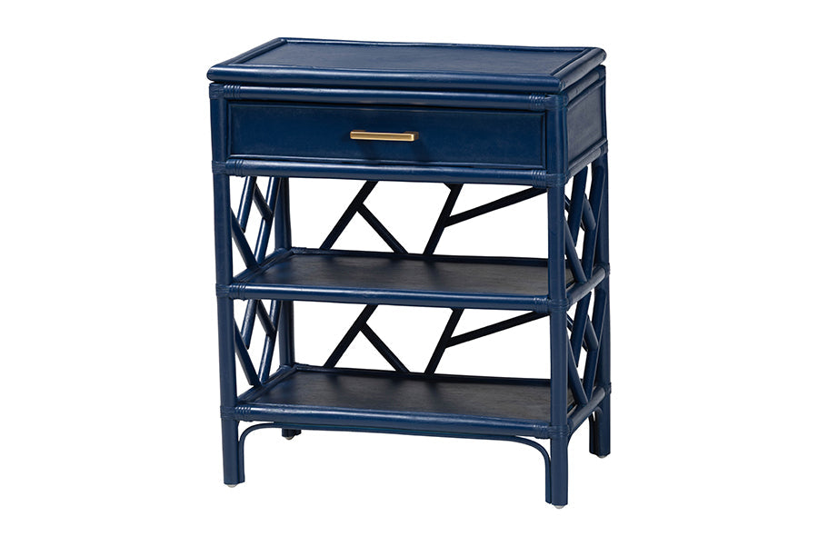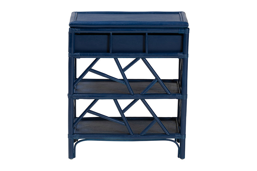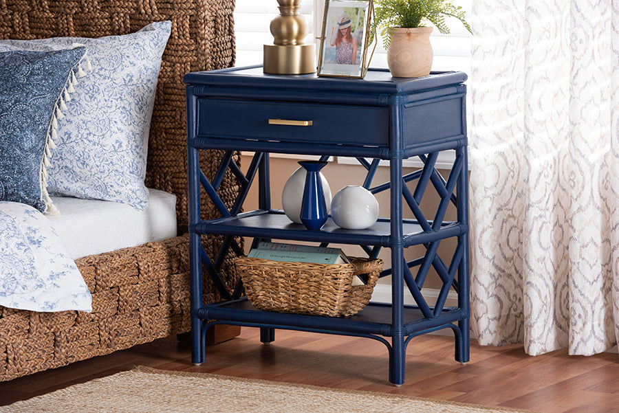 Sinclaire Natural Rattan Nightstand w/Drawer and Open Shelves
