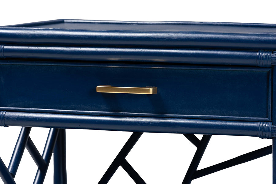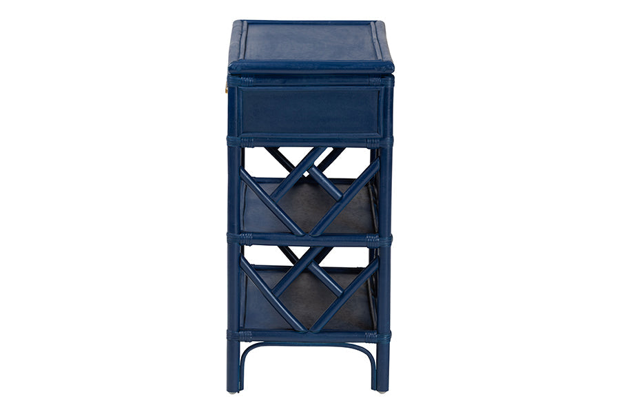 Impart a quality of paradise to your bedroom with the rustic flair of the Sinclaire nightstand. Made in Indonesia, this bohemian piece is handcrafted from sustainably sourced natural rattan. The drawer and two open shelves offer space to organize all your bedside essentials while reserving the tabletop for nightly use. The Sinclaire will arrive fully assembled and features a modern geometric design along its frame for vibrant charm. Fitted with a metal drawer handle, the Sinclaire nightstand is an enchanting bedroom complement. Disclaimer: Rattan is a product of nature and may have variations in areas such as, but not limited to, color, pattern, grain and texture. The hair-like strands of rattan/rattan-fiber are common due to the nature of the material.