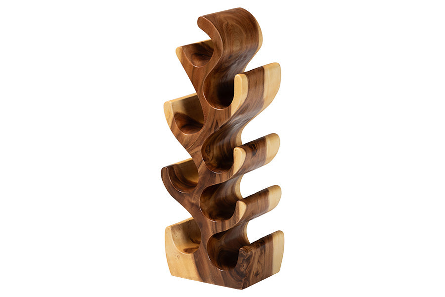 The Marisela wine rack brings an element of natural vibrancy to your home. Made in Indonesia, this bohemian piece is expertly hand carved from the trunk of a Suar wood tree. The enchanting display is complete with bold tendrils that form eight bottle holders to showcases beloved pieces of your collection in robust style. The Marisela will arrive fully assembled and showcases the raw grain and natural state of the wood, resulting in no two pieces being exactly alike. Crafted with care, the Marisela wine rack is a beautiful household embellishment.