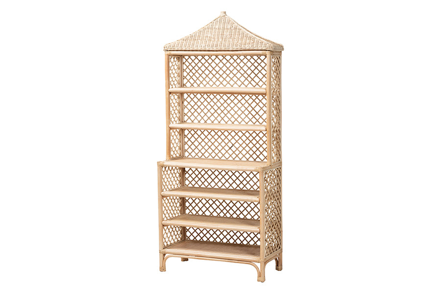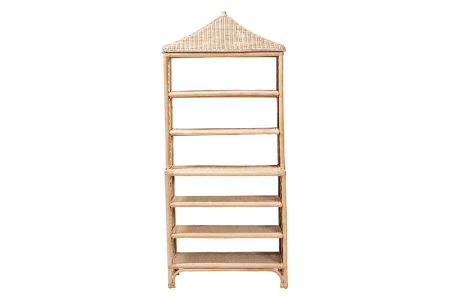 Bring the eclectic beauty of Eastern design to your home with the lovely Sherwin display shelf. Made in Indonesia, this bohemian piece is handcrafted from sustainably sourced natural rattan. Six open shelves offer ample space to beautifully exhibit a variety of decorations in any shared space. The Sherwin will arrive fully assembled and features an eye-catching pagoda top emblematic of graceful chinoiserie design. With its lightweight and breezy openwork panels, the Sherwin display shelf brings effortless poise to any setting.