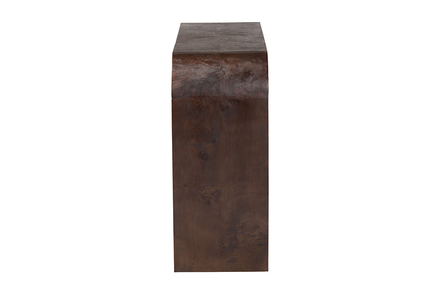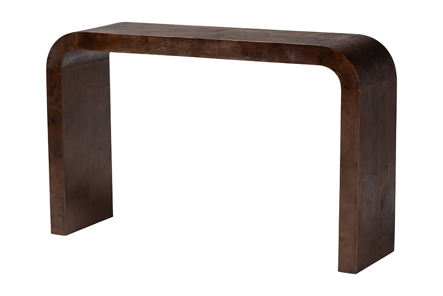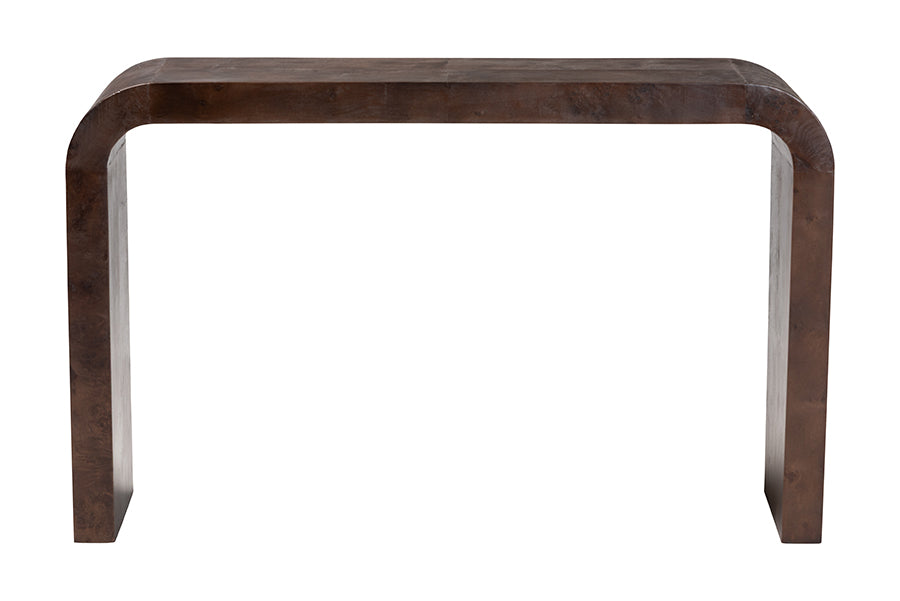 Incorporate the beauty of the natural world in your household with the stunning Willis console table. Crafted in Indonesia, this modern piece consists of natural burl wood. Its wide tabletop serves a fantastic display area while its smooth silhouette blends seamlessly with any modern layout. The Willis will arrive fully assembled and showcases the rich knots and rolling grain unique to burl wood, resulting in no two pieces being exactly alike. Lending exotic artistry in contemporary form, the Willis console table embellishes any arrangement.