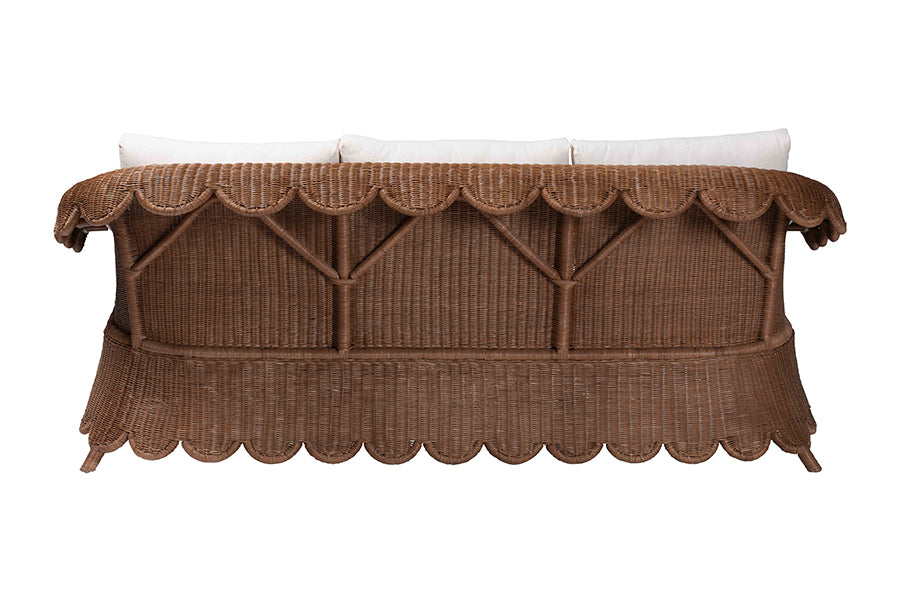 The artistic flair of paradise permeates every aspect of the stunning Contantine sofa. Made in Indonesia, this bohemian piece is handcrafted from sustainably sourced natural rattan. Its rounded frame forms elegantly sloping armrests for added comfort while beautifully scalloped borders create a vibrant presentation from every angle. The Contantine will arrive fully assembled and is fitted with removable cushions padded with plush foam and upholstered in soft fabric for superb comfort. Delivering the tranquility of an exotic hideaway, the Contantine sofa uplifts any setting.