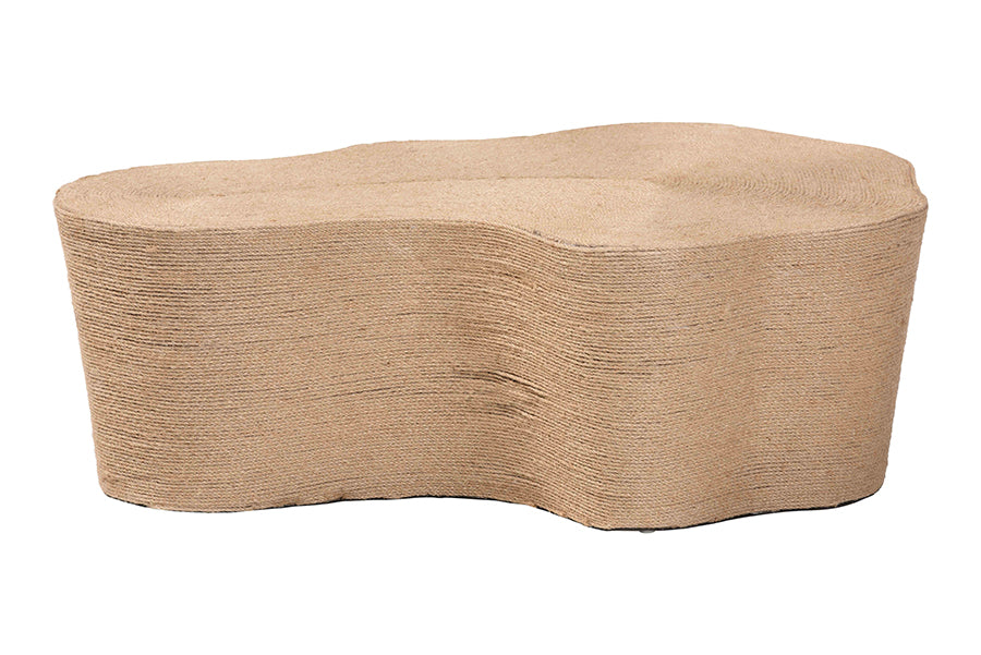 Product Dimensions: Overall Table Dimensions: 37.20" W x 24.00" D x 12.60" H;Textured Natural Jute Exterior : Fully wrapped in handwoven jute for a warm, tactile finish with rich visual appealDurable Construction : Constructed from Natural Jute and Engineered Wood Irregular shape: The artful yet functional form serves as an adept centerpiece rich with visual flair Contoured Frame: The bold curves of its tapered frame distinguish this table as a fantastic focal point in any shared setting Versatile Style : A neutral color palette enables this table to serve as a grounding piece in both minimalist and eclectic settings Fully Assembled : This coffee table arrives ready for use Set Includes: One (1) Coffee Table