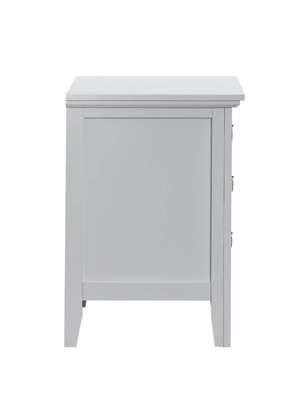 Crafted from a blend of solid and manufactured wood, this fully assembled 3-drawer nightstand offers both durability and convenience. Featuring polished nickel hardware and removable handles, it allows for easy customization to suit your style. Each drawer is equipped with center-mounted guides and safety stops for smooth, secure operation. With its clean design and practical storage, this nightstand is a versatile addition to any bedroom.