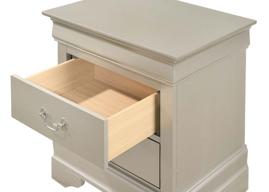 Assembled Nightstand is Finished in Real Wood Veneers over Manufactured and Solid Wood. Drawers Move on Center Supported Metal Guides and Are Dovetailed Front and Back. Corner Blocks are utilized to Support Drawer Bottoms. Choose from a Variety of Colors. Additonal Case Pieces are Available as well as Matching Beds