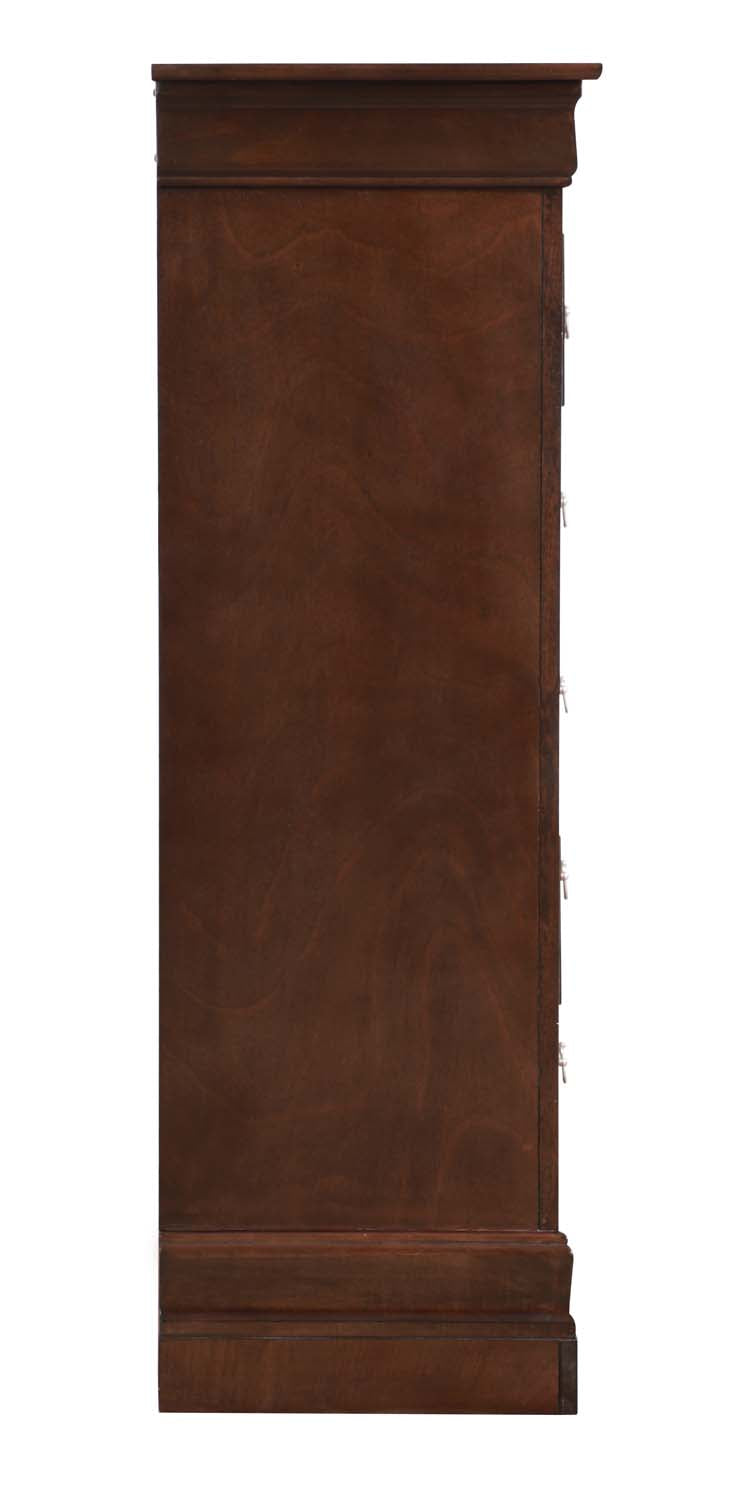 This five-drawer chest offers classic styling and practical storage for any bedroom. Its clean lines, traditional detailing, and smooth-glide drawers create a functional and attractive piece that keeps clothing and essentials neatly organized. Perfect for both everyday use and adding timeless charm to your space.