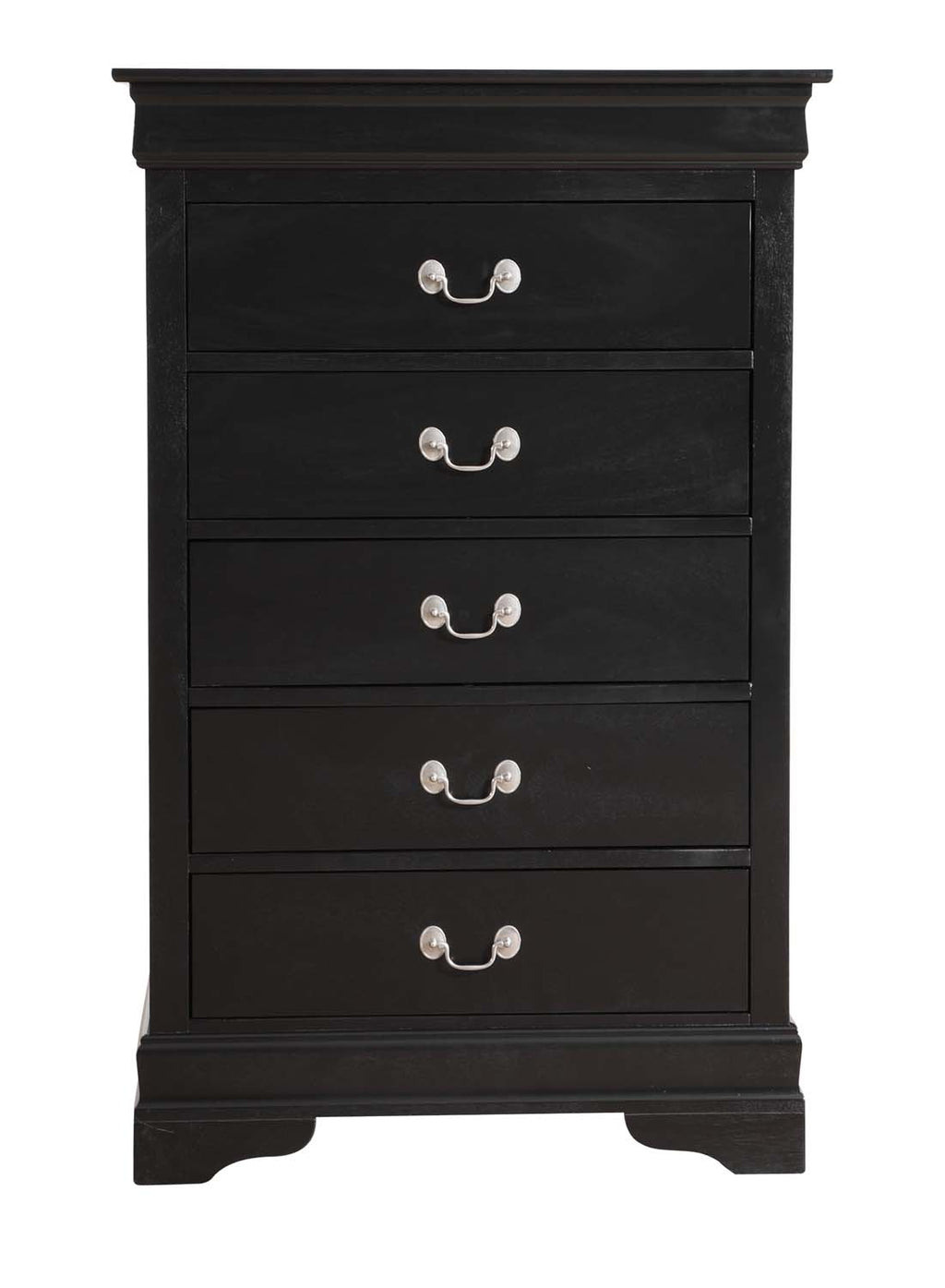 This five-drawer chest offers classic styling and practical storage for any bedroom. Its clean lines, traditional detailing, and smooth-glide drawers create a functional and attractive piece that keeps clothing and essentials neatly organized. Perfect for both everyday use and adding timeless charm to your space.
