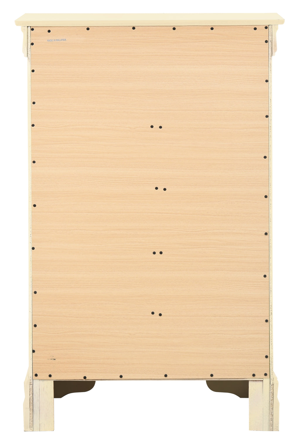 This five-drawer chest offers classic styling and practical storage for any bedroom. Its clean lines, traditional detailing, and smooth-glide drawers create a functional and attractive piece that keeps clothing and essentials neatly organized. Perfect for both everyday use and adding timeless charm to your space.