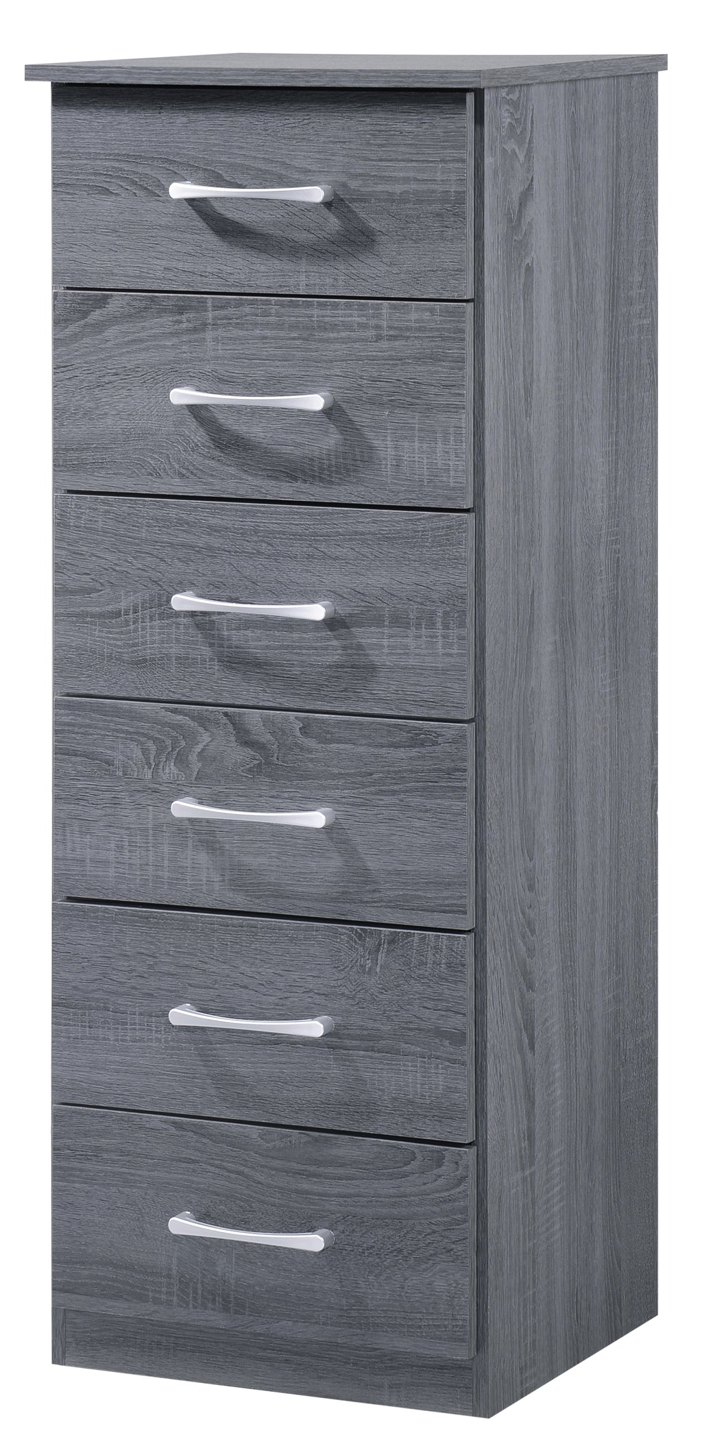 This slim six-drawer chest is designed to bring practical storage to even the tightest spaces. Its tall, streamlined silhouette makes it ideal for bedrooms, closets, or any area where floor space is limited but organization is essential. Each drawer offers generous room for clothing, accessories, or small household items, helping keep your daily essentials neatly arranged and easy to find. The clean, modern profile gives the piece a versatile look that fits effortlessly with contemporary or minimalist décor. Sleek handles add a refined touch while making every drawer easy to open and close. Whether used as a main storage piece or as a supplementary organizer, this chest delivers both function and simplicity.
