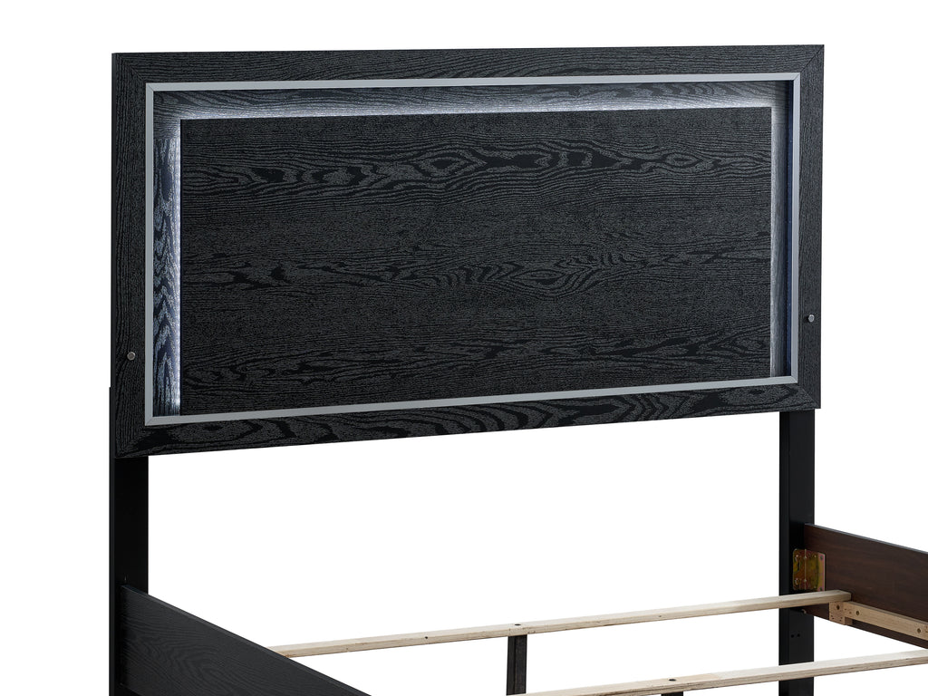 - Headboard features built-in back lighting for soft illumination and a warm, inviting ambiance.