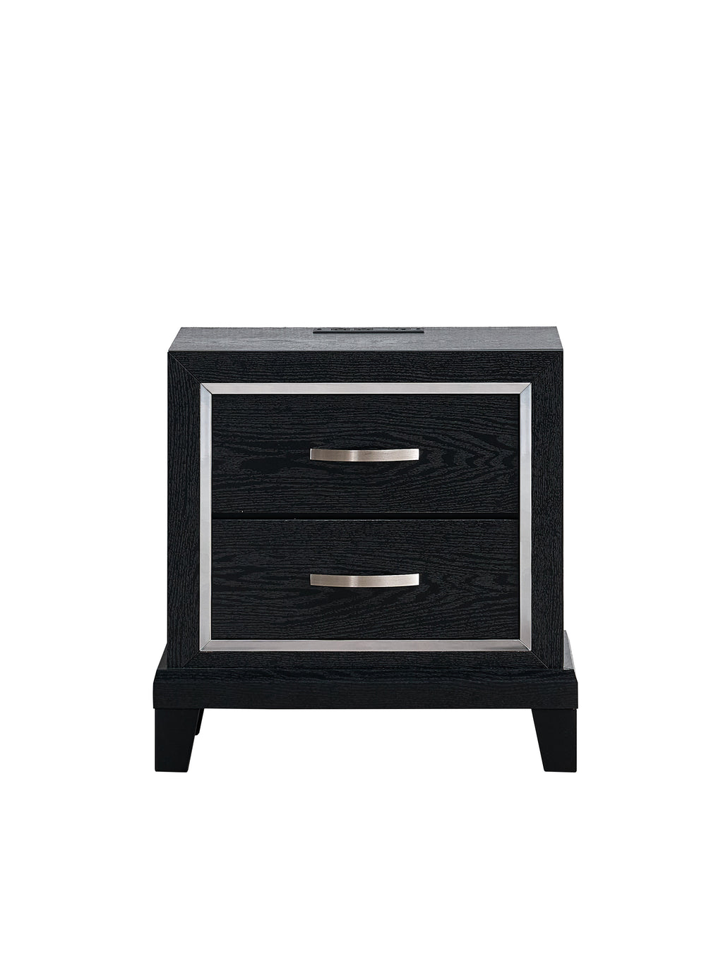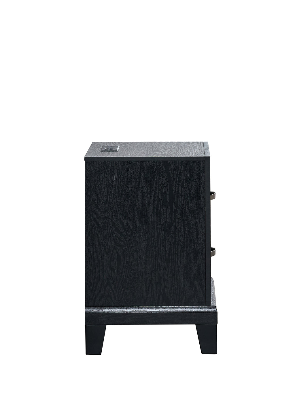This Black Nightstand offers functional style with a sleek profile and wood grain pattern. Two spacious drawers provide essential bedside storage and maintain an uncluttered look, making it ideal for both updated and timeless interiors. Equipped with English dovetail joints for lasting strength, this nightstand features a built-in power unit that includes two AC outlets, a USB port, and a USB-C outlet for dependable overnight charging. Deep drawers help keep personal items neatly organized, while the low-profile design maximizes convenience without dominating your space. Pair this nightstand with matching beds or dressers in similar black finishes for a coordinated bedroom look, or accent with a contemporary lamp to further complement the nightstand’s modern design.