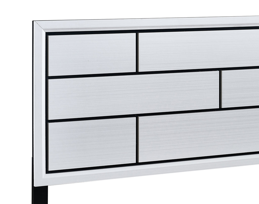 - Elegant white finish with a wood grain touch brings sophistication to any bedroom decor.