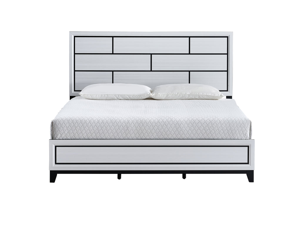 This White Panel Bed brings a touch of modern refinement to your bedroom. With its captivating white hue and superior design, this bed is crafted to be the centerpiece of your space, radiating class and charm. This bed not only offers impressive style but also practical features. It provides sturdy support for your mattress, ensuring a comfortable sleep every night. The bed's sophisticated design details make it a versatile addition, blending seamlessly with a wide range of bedroom decors. For a coordinated look, pair this bed with matching dressers, nightstands, or chests from our extensive collection. Please note: Requires box spring or other mattress support.