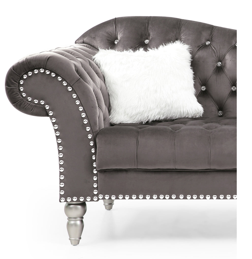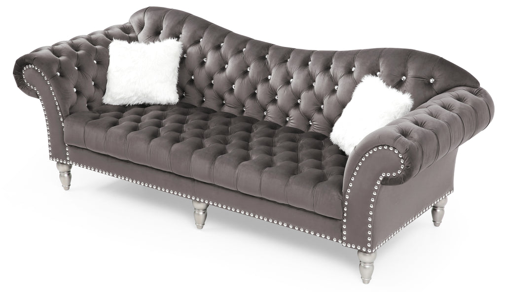 This Oversize Upholstery Group Provides Generous Seating and Long Lasting Comfort. Unique Design allows for Self Assembly in your Room of Choice without Tools! Deep Tufted with Soft Velvet Cover with Nailheads and Wood Legs.