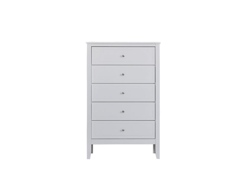 Value and Style are featured in this Assembled Bedroom Chest . Drawers Move on Center Supported Metal Guides and Corner Blocks are utilized to Support Drawer Bottoms. Additonal Case Pieces are Available as well as Matching Beds