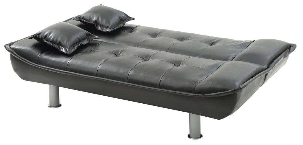 Modern Design with Dual Functionality as a Sofa and Sleeper adds Style and Value to any Home. Durable Faux Leather Cover is Tufted for added Strength and Comfort. Chrome Legs Finish off this Stylish Design. Includes 2 Throw Pillows