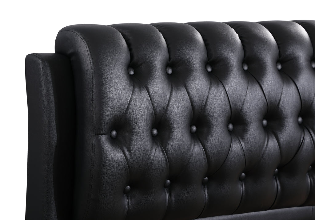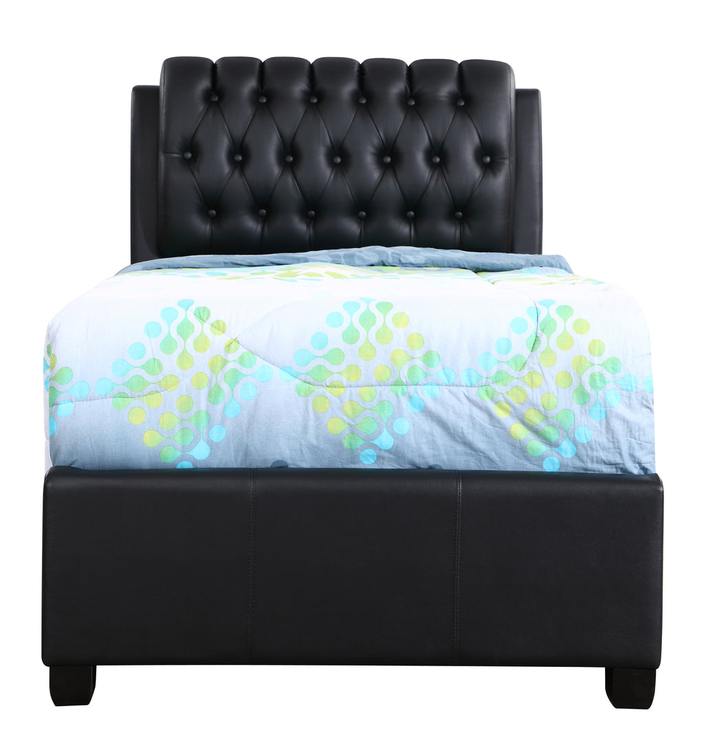 This bed brings a refined, upscale look to your bedroom with its elegantly tufted headboard and sleek, upholstered frame. The gently curved headboard offers comfortable support for sitting up and relaxing, while the clean-lined footboard and side rails maintain a modern, streamlined aesthetic. Built with a sturdy foundation designed to support your mattress with stability, this bed combines style, comfort, and durability - making it a standout centerpiece for any contemporary space.