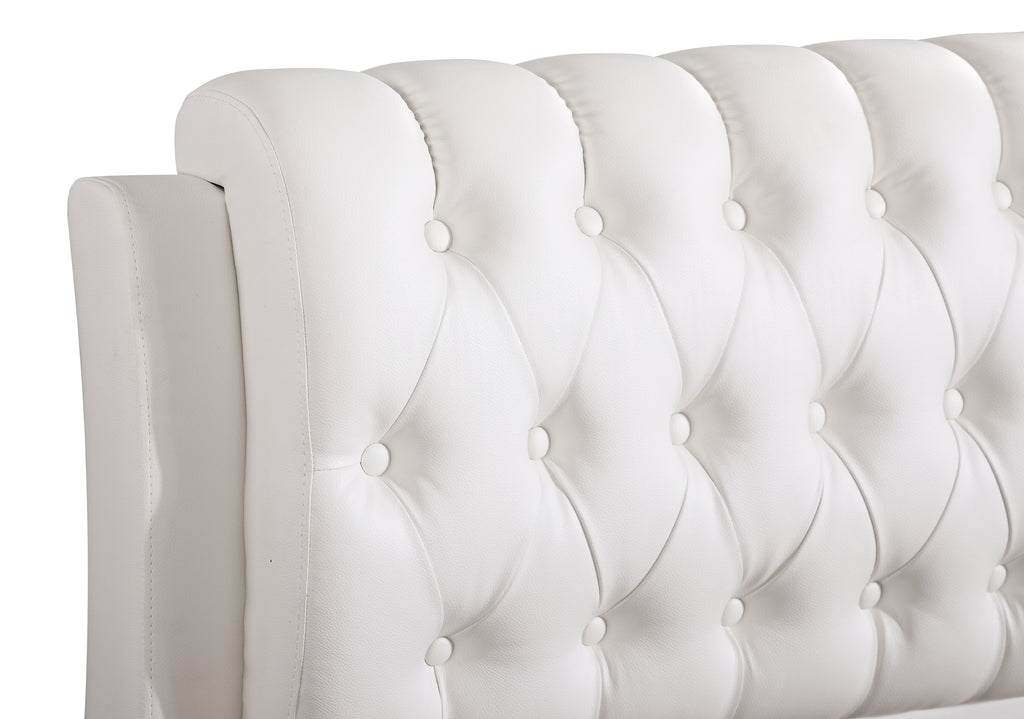 This bed showcases a bold, sophisticated look with its deeply tufted headboard and smooth, upholstered frame. The gently curved top adds a refined touch, making the headboard both stylish and comfortable for relaxing or reading. Clean lines along the footboard and side rails create a modern silhouette, while the sturdy support system ensures lasting durability. A perfect blend of elegance and contemporary design, this bed instantly elevates any bedroom setting.