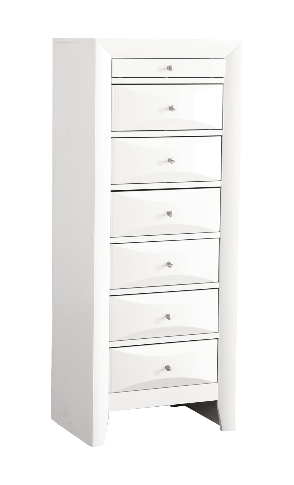 Assembled Lingerie Chest is Finished in Real Wood Veneers over Manufactured and Solid Wood. Drawers Move on Center Supported Metal Guides and Are Dovetailed Front and Back. Corner Blocks are utilized to Support Drawer Bottoms. Choose from a Variety of Colors. Additonal Case Pieces are Available as well as Matching Beds