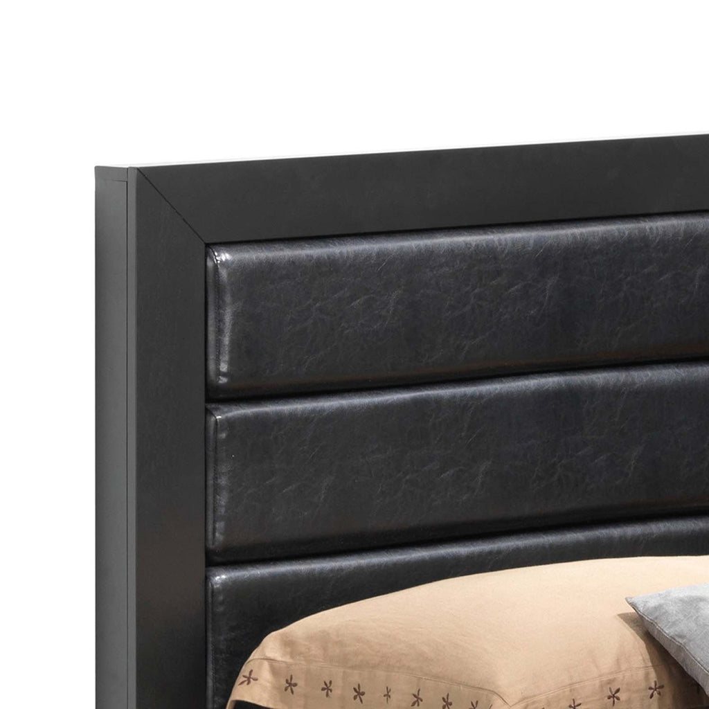 Bring modern sophistication to your space with this stylish upholstered bed. The headboard showcases layered, cushioned panels that offer both visual appeal and comfortable support for lounging. A simple, sturdy frame completes the look, making it a great choice for bedrooms that blend comfort with contemporary design.