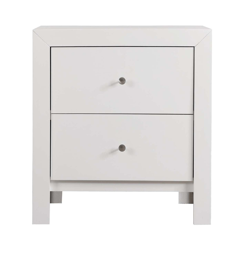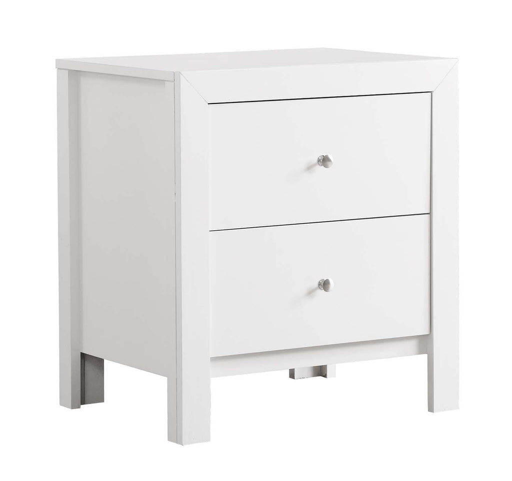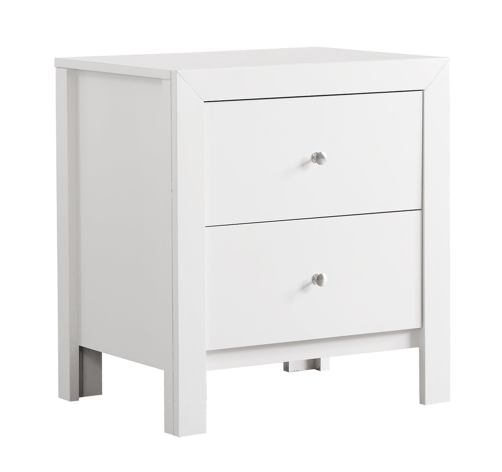 Assembled Nightstand is Finished in Real Wood Veneers over Manufactured and Solid Wood. Drawers Move on Center Supported Metal Guides and Are Dovetailed Front and Back. Corner Blocks are utilized to Support Drawer Bottoms. Choose from a Variety of Colors. Additonal Case Pieces are Available as well as Matching Beds