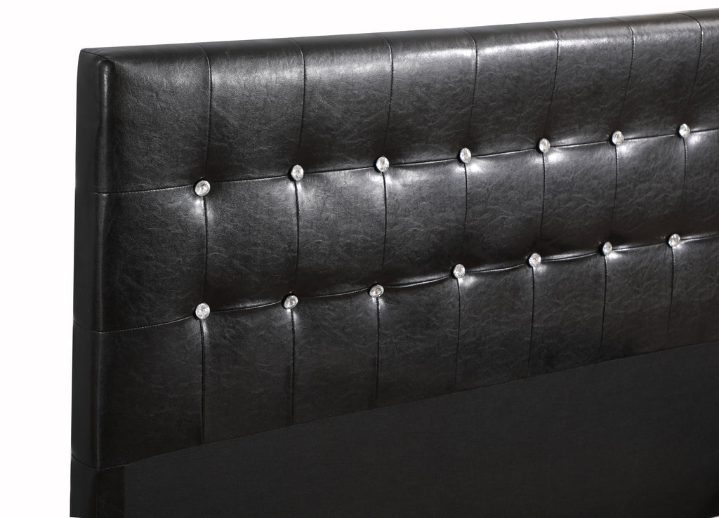 Elevate your bedroom with this striking upholstered bed featuring beautifully tufted detailing accented with sparkling crystal-like buttons. The padded headboard creates a comfortable space for reclining, while the matching footboard adds a cohesive, luxurious look. Designed with clean lines and a low-profile frame, this bed brings a refined contemporary touch to any sleeping space.