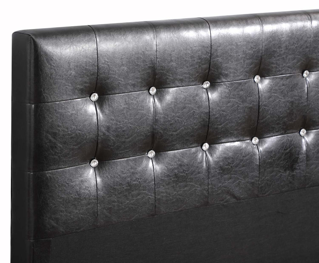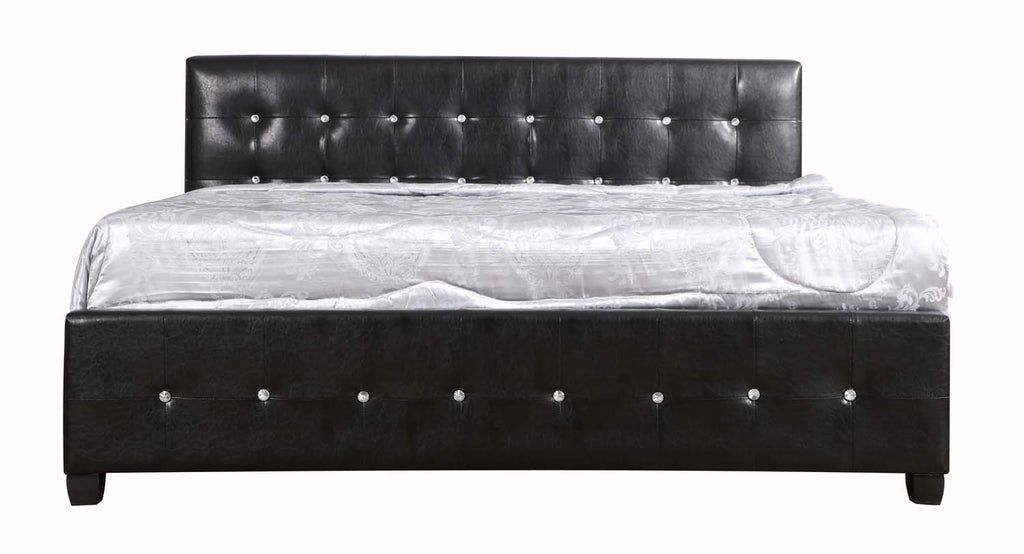 Elevate your bedroom with this striking upholstered bed featuring beautifully tufted detailing accented with sparkling crystal-like buttons. The padded headboard creates a comfortable space for reclining, while the matching footboard adds a cohesive, luxurious look. Designed with clean lines and a low-profile frame, this bed brings a refined contemporary touch to any sleeping space.