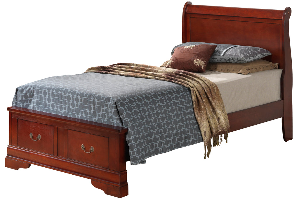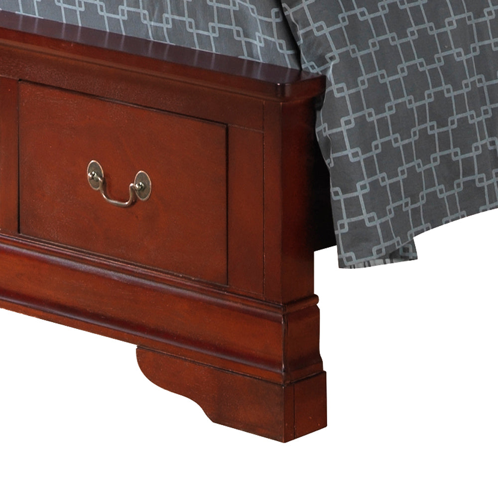 This classic sleigh bed features gracefully curved panels and warm wood tones that bring timeless elegance to your bedroom. The sturdy frame offers reliable support, while two built-in footboard drawers provide convenient storage for blankets, linens, and everyday essentials. A perfect blend of traditional style and practical function.