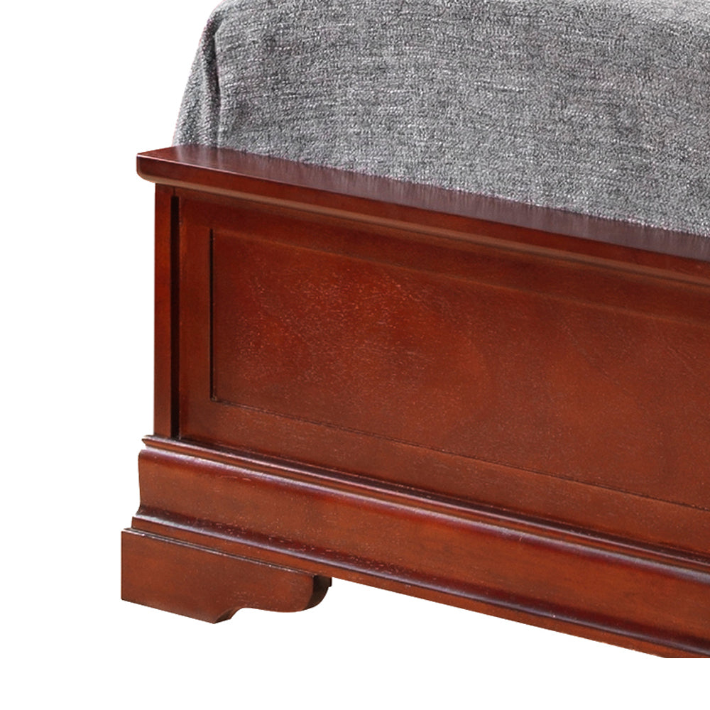 This elegant sleigh bed brings a warm, traditional charm to your bedroom with its rich wood finish and gently curved headboard and footboard. The smooth, paneled design highlights the craftsmanship, offering a clean and timeless look that works beautifully in both classic and transitional spaces. The graceful curvature adds a refined silhouette without overpowering the room, while the sturdy frame provides dependable support for nightly comfort. Its warm tones help create a cozy and inviting environment, making it an excellent choice for master bedrooms or guest rooms where style and relaxation are equally important. Pair it with neutral bedding for a soft, serene aesthetic or bold patterns to create a striking focal point. This bed delivers lasting beauty with a sophisticated, understated presence.