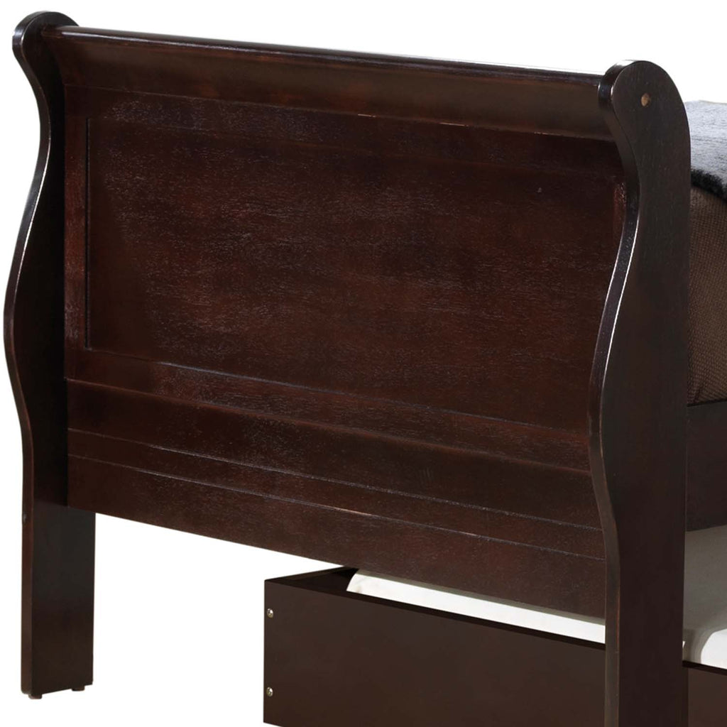 This sleigh bed combines timeless curves with practical everyday function. The gently rolled headboard and footboard create a classic silhouette, offering a graceful presence that elevates any bedroom. Beneath the frame, a spacious pull-out trundle provides an additional sleeping area, making it ideal for guests, shared rooms, or maximizing space in smaller homes. The smooth panels and clean lines highlight its traditional craftsmanship, while the sturdy construction ensures lasting durability. This bed brings together elegance and convenience, offering both style and smart storage without overwhelming the room.